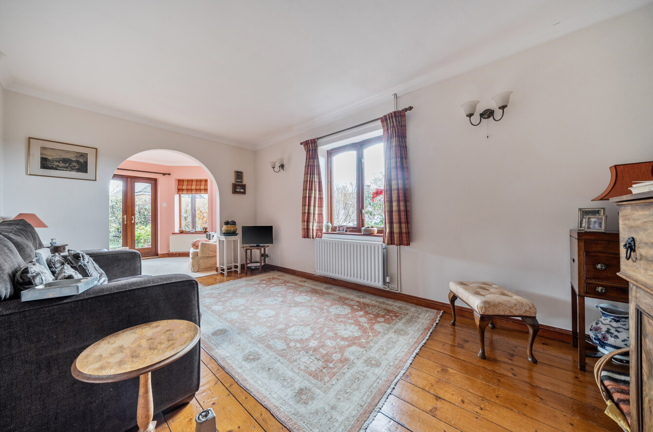 The double-aspect sitting room enjoys direct access to the rear garden and offers a delightful balance of light and cosiness. Its generous proportions and versatile layout allow for a variety of furniture arrangements, making it a comfortable living space throughout the year.