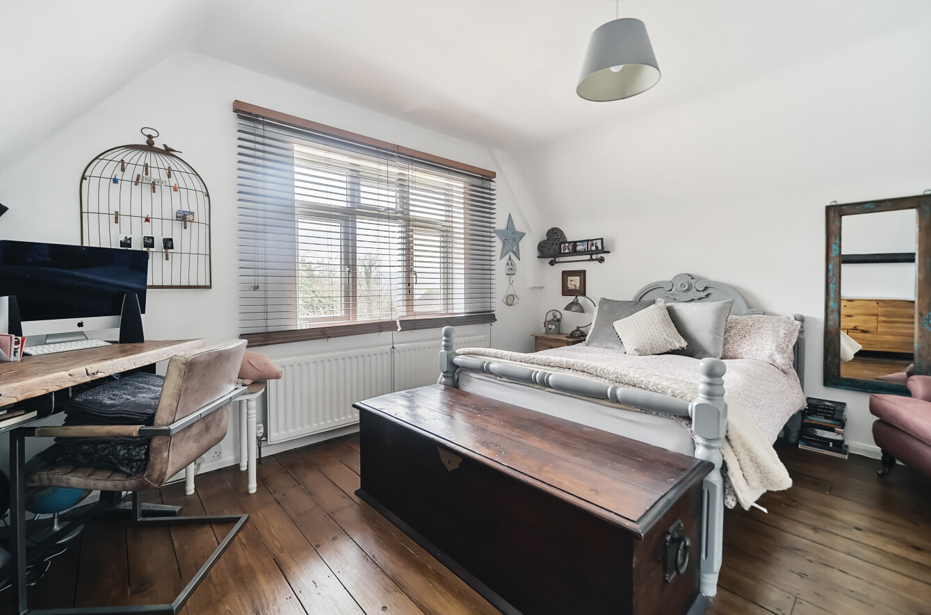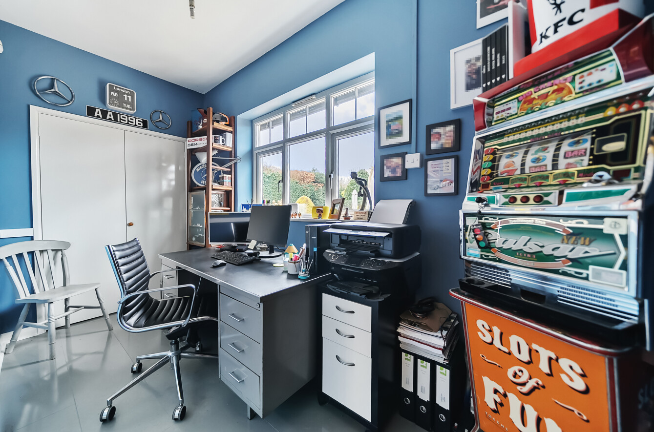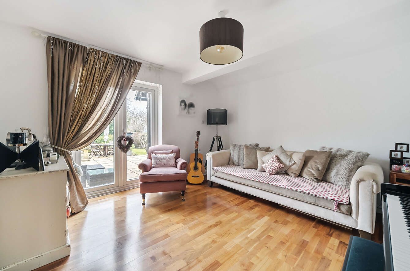 The ground floor has been carefully designed to offer flexible and contemporary living spaces. At the heart of the home is a stunning open-plan kitchen and dining area, featuring sleek modern units, quality appliances, and ample workspace, making it perfect for both everyday use and entertaining. The adjoining family room enjoys direct access to the garden through French doors, allowing for seamless indoor-outdoor living. A separate sitting room provides a cozy and inviting space, opening into a bright conservatory that floods the area with natural light and offers a lovely spot to enjoy views of the garden year-round. Additionally, the ground floor features a modern shower room, a practical addition for guests or those requiring ground-floor facilities. A dedicated office is neatly tucked away, offering an ideal environment for working from home or as a peaceful study space. This well-positioned room ensures privacy without feeling disconnected from the rest of the home.
