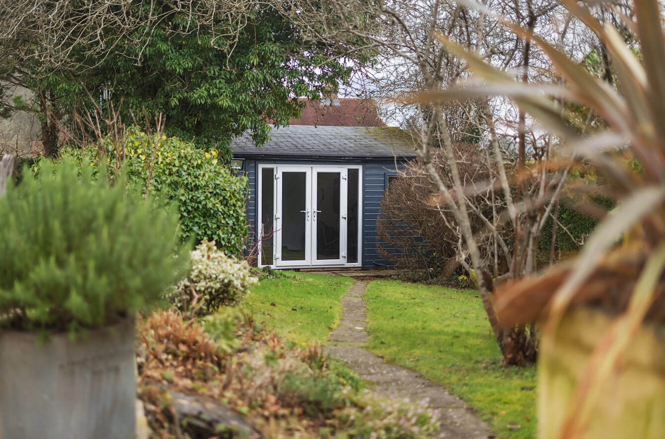 Outside, the property continues to impress. A spacious driveway provides off-road parking for six to eight vehicles and leads to a large garage and a covered carport, offering plenty of storage and workshop potential. To the rear of the house, a beautifully landscaped garden awaits, featuring a generous paved patioperfect for outdoor dining and entertaining. The garden extends beyond, planted with an attractive array of mature shrubs and trees, creating a peaceful and private outdoor sanctuary. At the far end of the garden, a fantastic addition awaitsa fully insulated and double-glazed studio, designed as a versatile space that can serve as a home office, gym, creative studio, or relaxation retreat. Adjacent to the studio is a workshop, providing further practical space for hobbies, DIY projects, or additional storage.