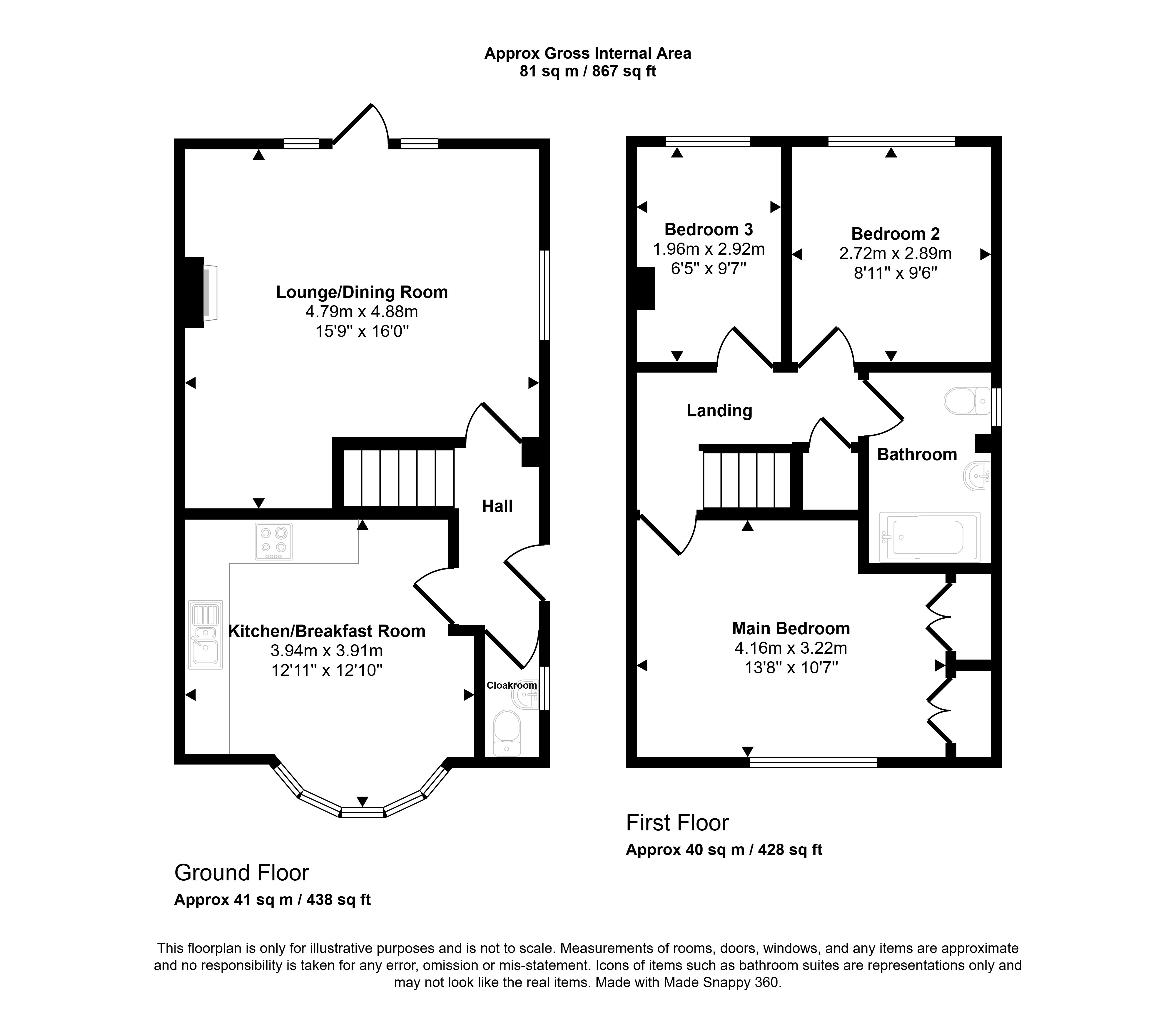 The spacious living area is ideal for relaxing or entertaining guests and has access to the rear garden. The kitchen/breakfast room offers a good range of wall and base units and with the feature bow window enjoys a wonderful feeling of space and is also perfect for entertaining or enjoying time with the family. There is also the convenience of a ground-floor cloakroom.