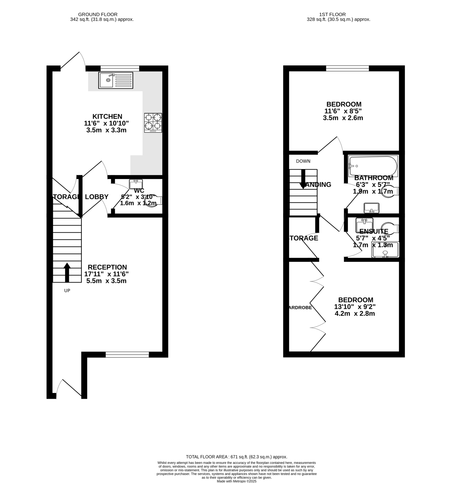 Upstairs, the property offers two generous double bedrooms, with the master bedroom benefiting from its own en-suite shower room, in addition to a modern family bathroom.