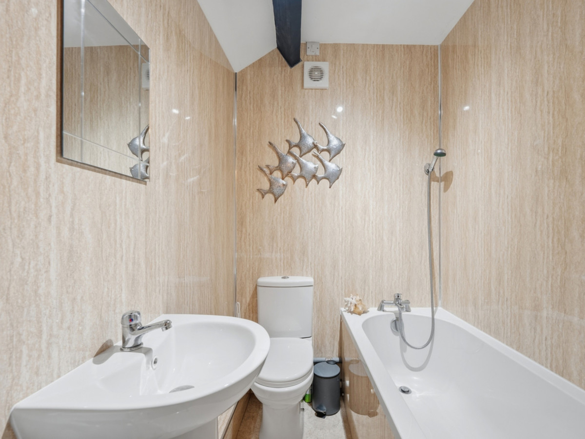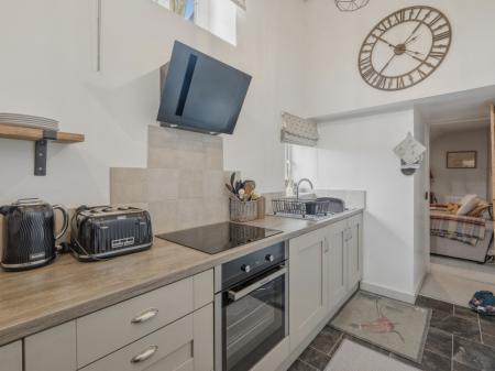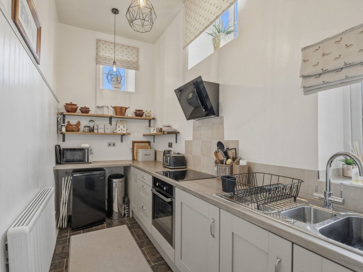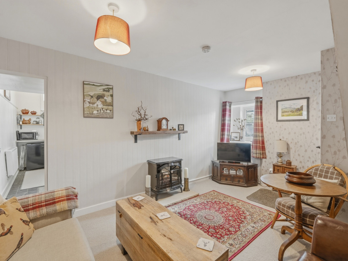The property itself offers cosy and well-maintained accommodation. The ground floor comprises a comfortable living room and a well-appointed galley kitchen. To the first floor, there is a spacious double bedroom and a modern bathroom. The property benefits from double glazing and electric heating.