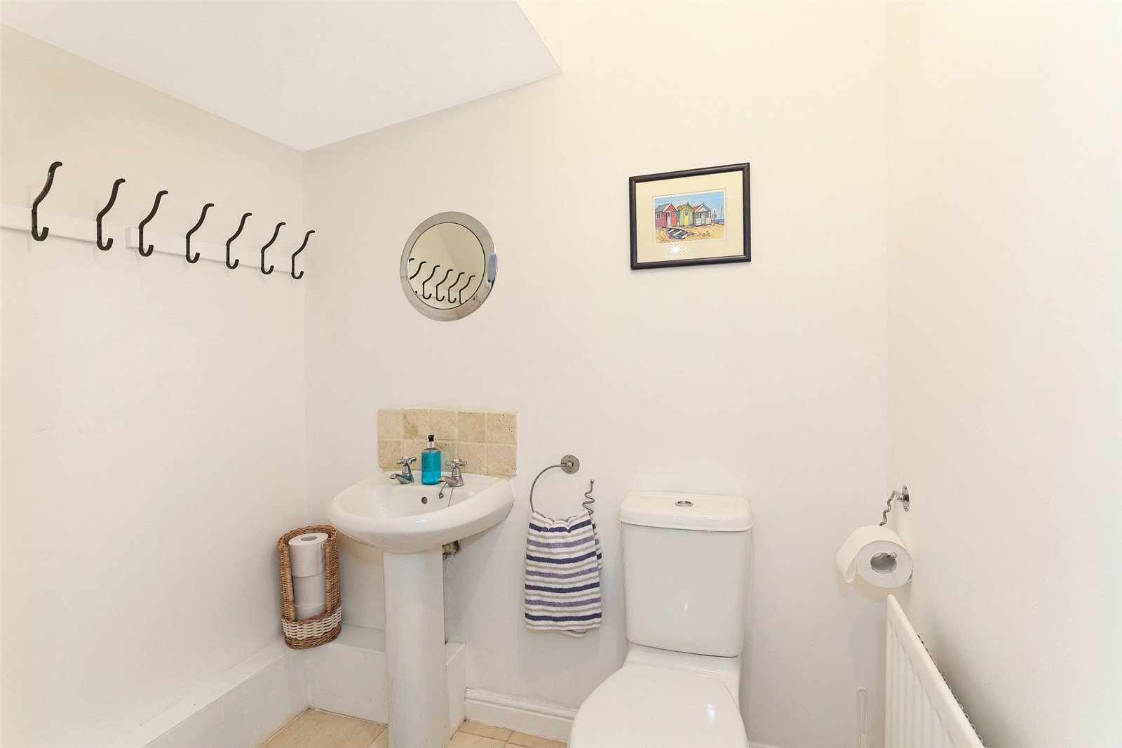 Cloakroom Having pedestal wash basin, low flush w/c, tiling, single panel radiator, access to understairs storage.