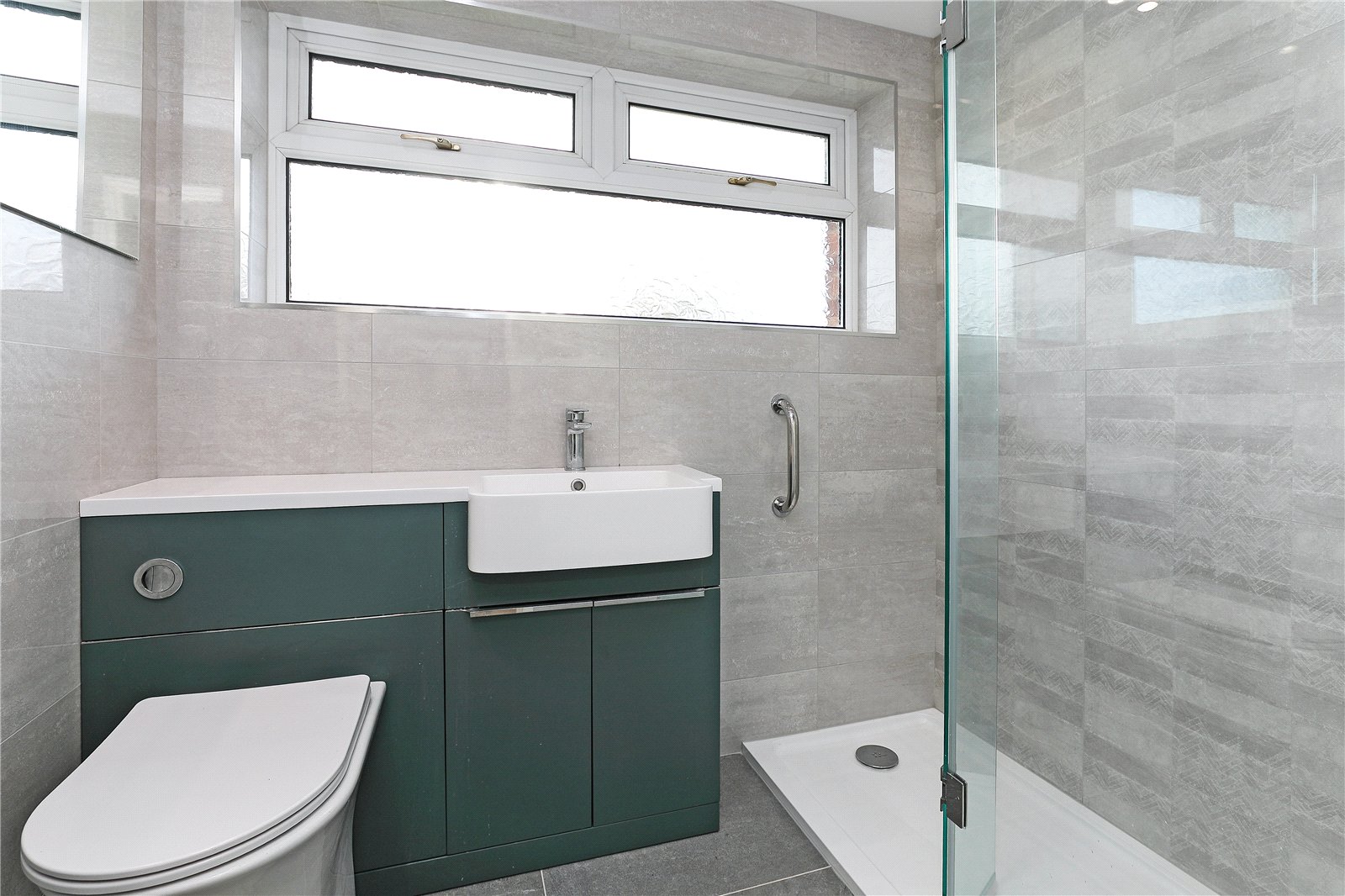 Combined Shower Room Furnished with wash hand basin, low flush w/c, walk-in shower, being fully tiled, double glazed window, heated towel rail.