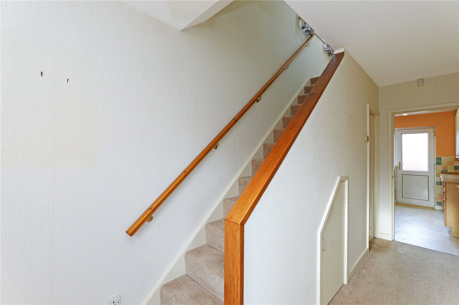 Entrance Hall With double glazed entrance door and window, open staircase with understairs storage cupboard, cupboard containing central heating boiler.