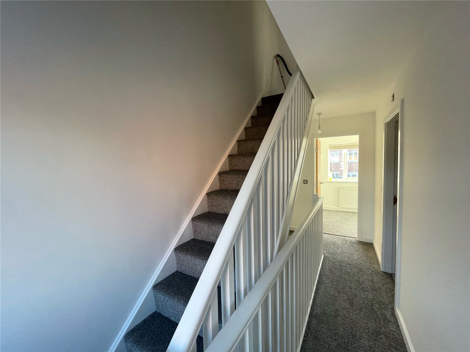 Stairs Leads to First Floor Landing With double glazed window and central heating radiator.
