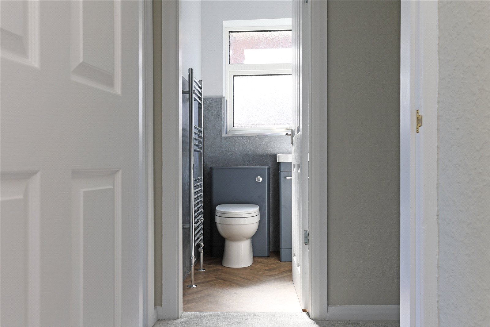 House Bathroom Recently refitted with wash hand basin, low flush w/c set in back to wall furniture, panelled bath with shower over, wet walling to the walls, double glazed window, chrome heated towel rail.