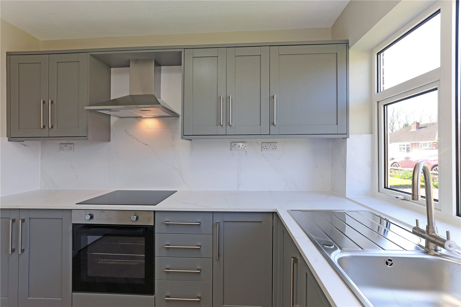 Kitchen 8'4" x 9'5" (2.54m x 2.87m). Recently refitted with a matching range of grey shaker style fronted wall and base units, contrasting marble effect worktops, stainless steel sink unit with single drainer and mixer tap unit, built in oven and hob with extractor hood over, central heating boiler, plumbing for automatic washing machine, double glazed window, single panel radiator.