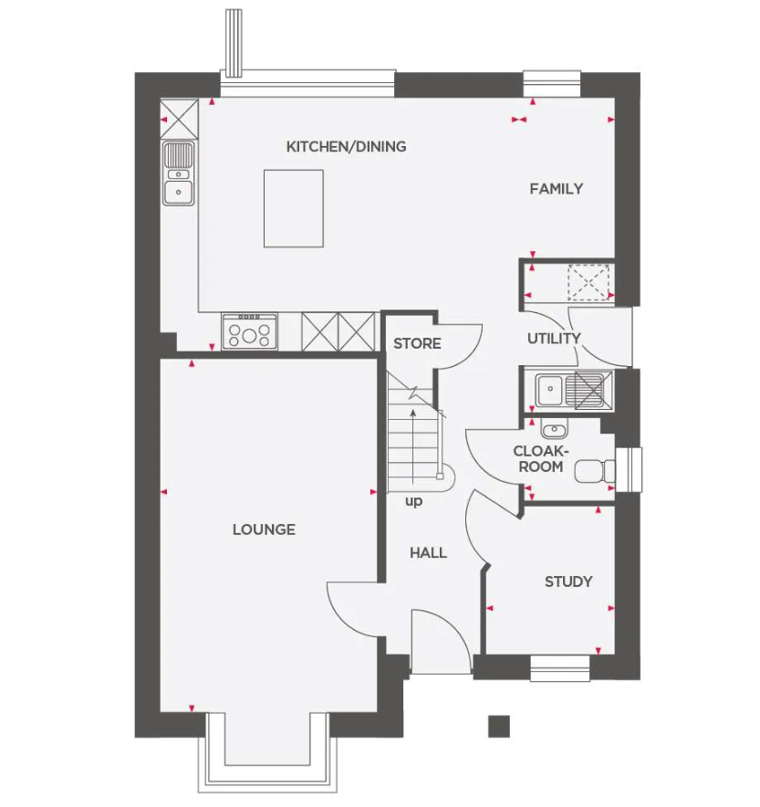 The Madeira is an impressive four bedroom detached house offering plenty of space for flexible family living. The ground floor comprises large lounge, and an extensive open plan kitchen/dining/family room with a separate utility room, bi-fold doors leading to the rear garden, and downstairs study & cloakroom.