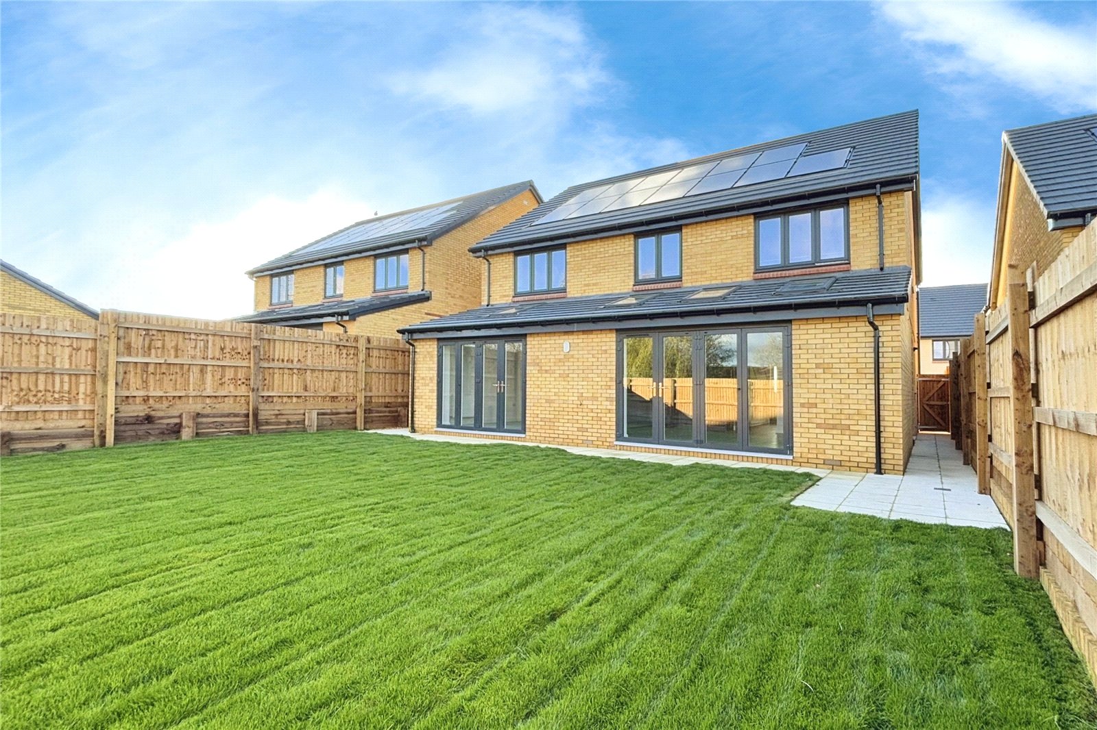 Externally, the garden to the front will be landscaped with turf and a patio area to the rear. There is a double garage, driveway parking, climate and cost friendly solar panels along with an electric car charging point.