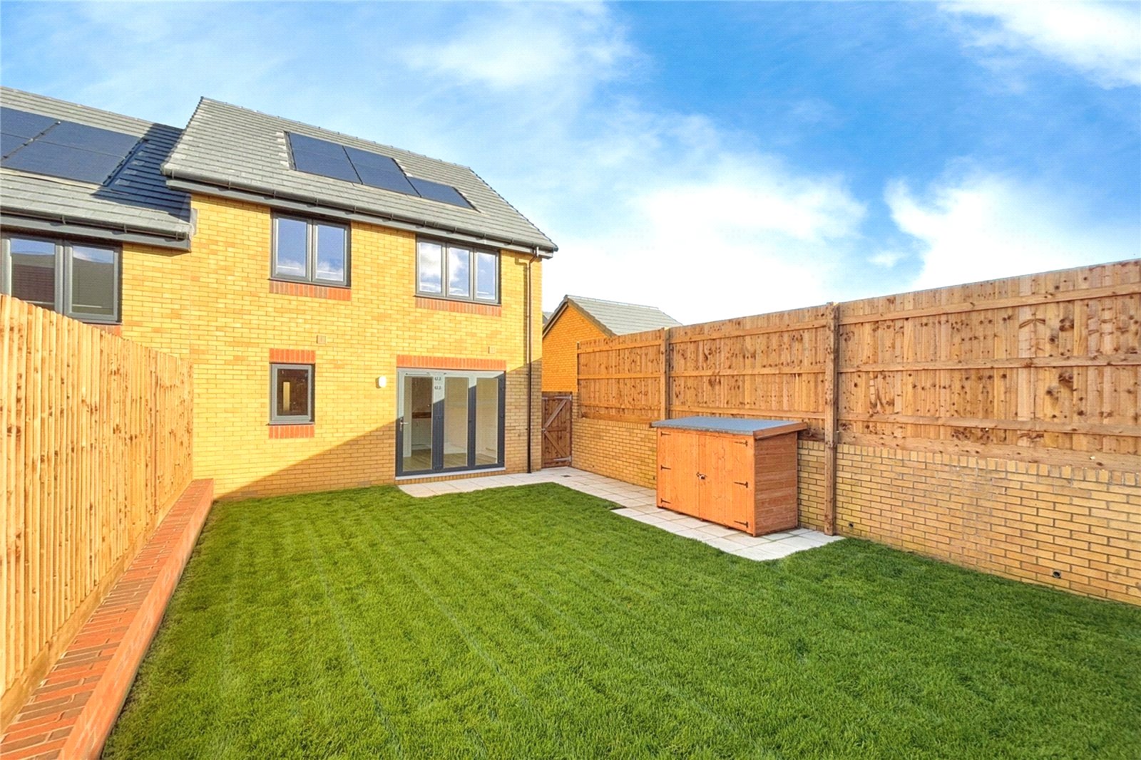 Externally, the garden to the front will be landscaped with turf and a patio area to the rear. There is off street parking, climate and cost friendly solar panels along with an electric car charging point.