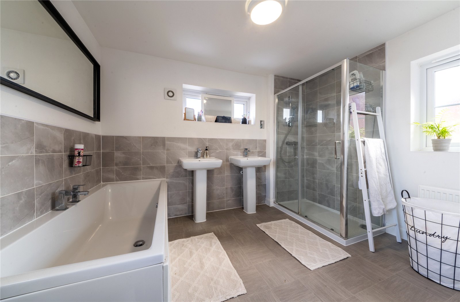 Upstairs, the first floor houses three generous double bedrooms, two of which benefit from en-suite shower rooms. The principle suite includes a dressing area and large ensuite with twin basins, bath and seperate shower. The top floor offers two additional bedrooms, along with a bathroom and additional storage space, making it ideal for teenagers, guests, or even a home office setup.