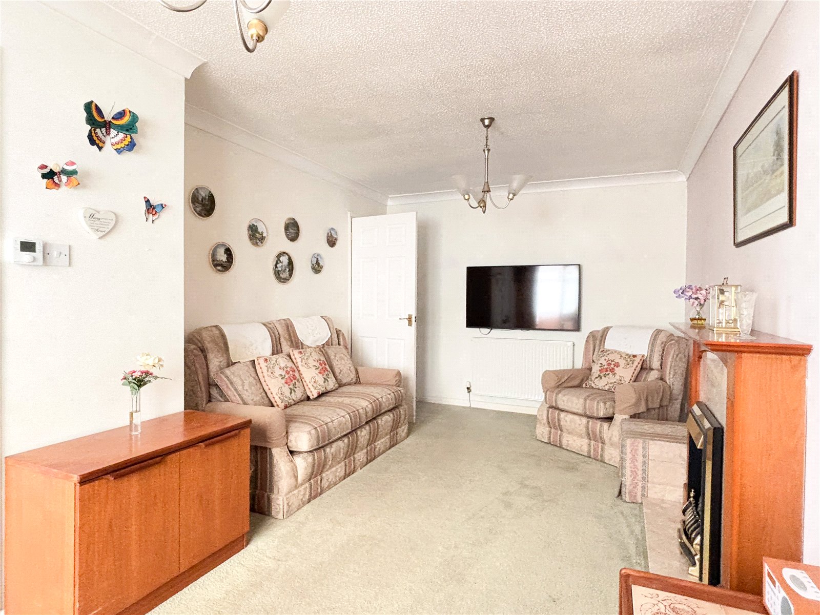 Externally there is a long driveway with ample parking, a garage and a sunny garden with both patio areas and lawn and a utility area located off the back of the garage.