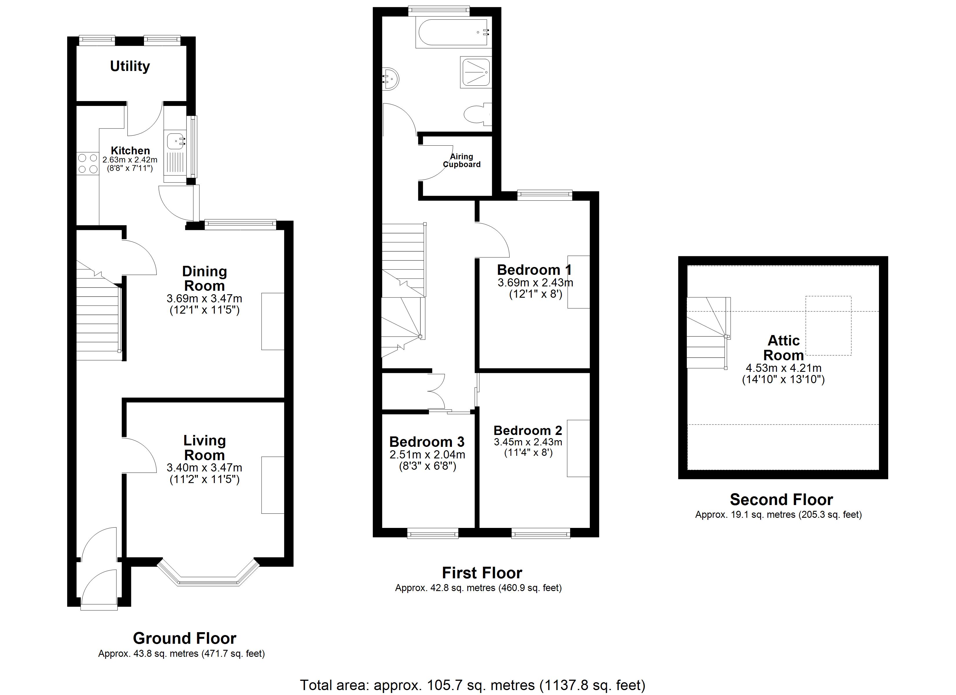 A large three bedroom home that includes an attic room meaning plenty of space for a family. As you enter the property you are welcomed by a hallway leading onto your living room that boasts a woodburner meaning a cosy warm family room in those winter months and a bay window which allows plenty of natural light to flood through. A further recpetion room is found on the ground floor which is used as a dining space and is an ideal entertaining space. A well appointed kitchen enjoys good storage and worktop space and there is also a large utility/pantry space located off the kitchen.