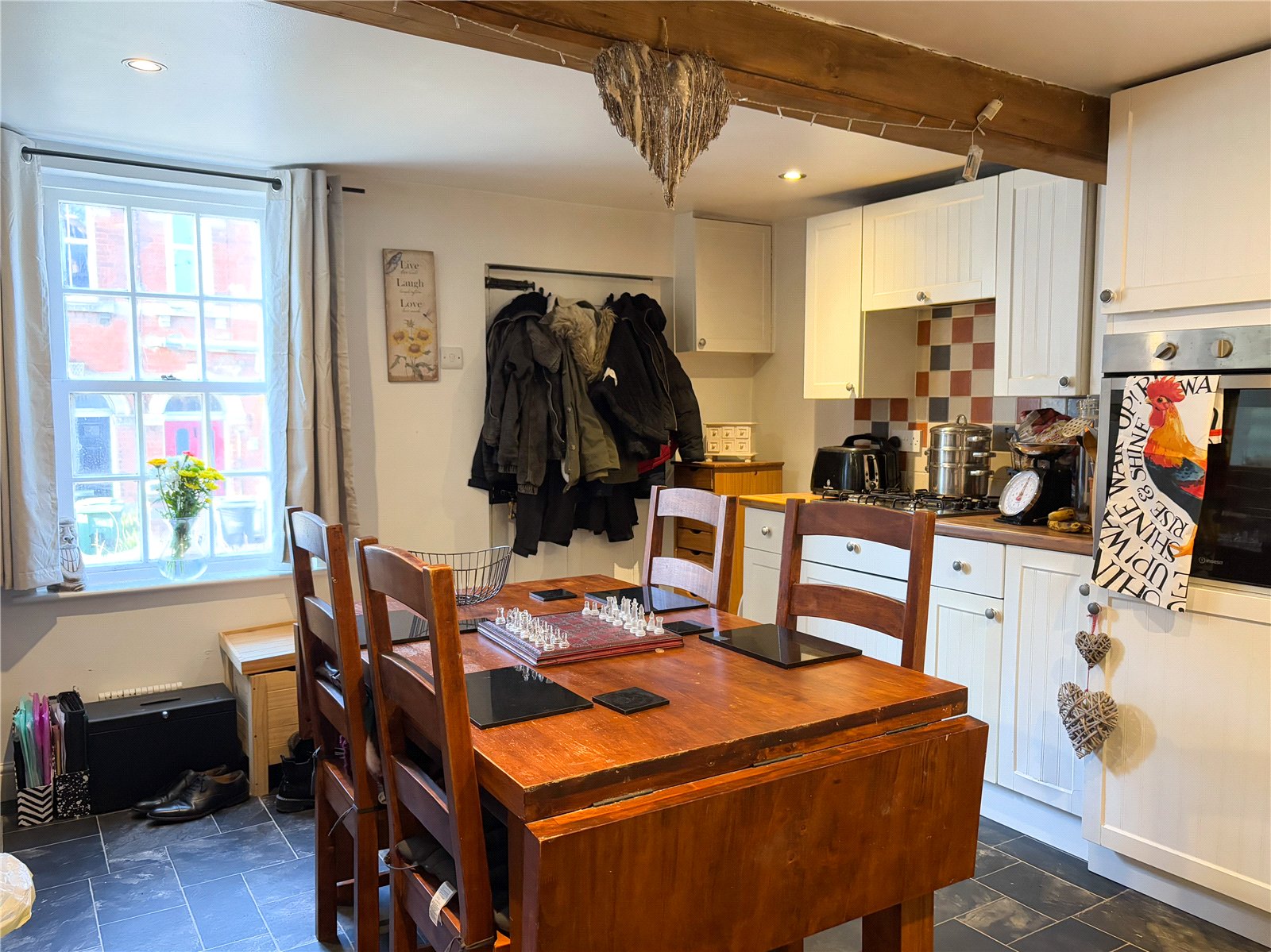 As you enter the property you are welcomed by a kitchen dining room. A well maintained kitchen with plenty of storage and worktop space. A large enough space for a good sized dining table and chairs allows for social evenings and dining. As you make your way through the kitchen you will enter the living room which has lots of bright natural light and a fireplace with the potentail to put a woodburner. A rear door with access to the garden which is fenced and enclosed.