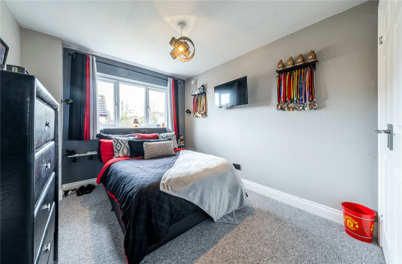 Upstairs the property continues to impress with four bedrooms including a principal bedroom with shower ensuite and views over the front of the property which includes the green. Bedrooms 1, 2 and 3 all include built in wardrobes and a modern family bathroom with double sink complete a wonderful family home.
