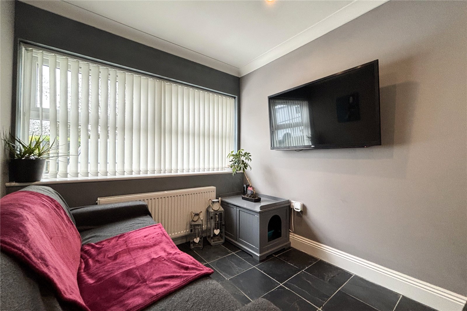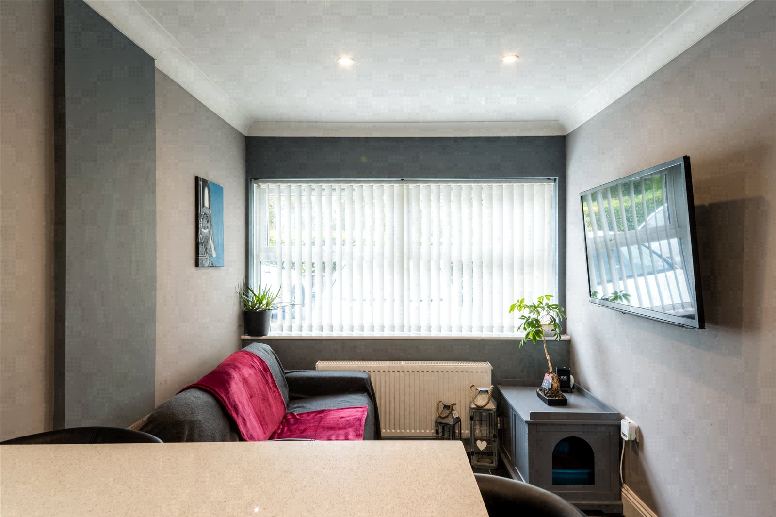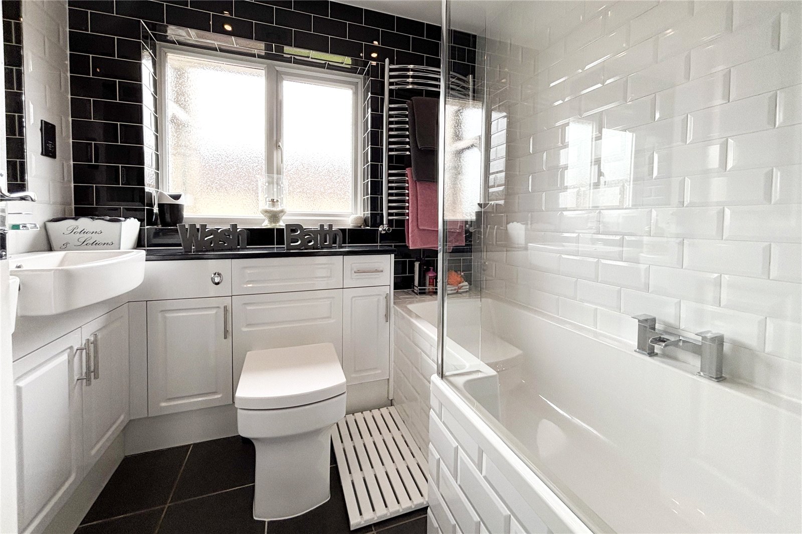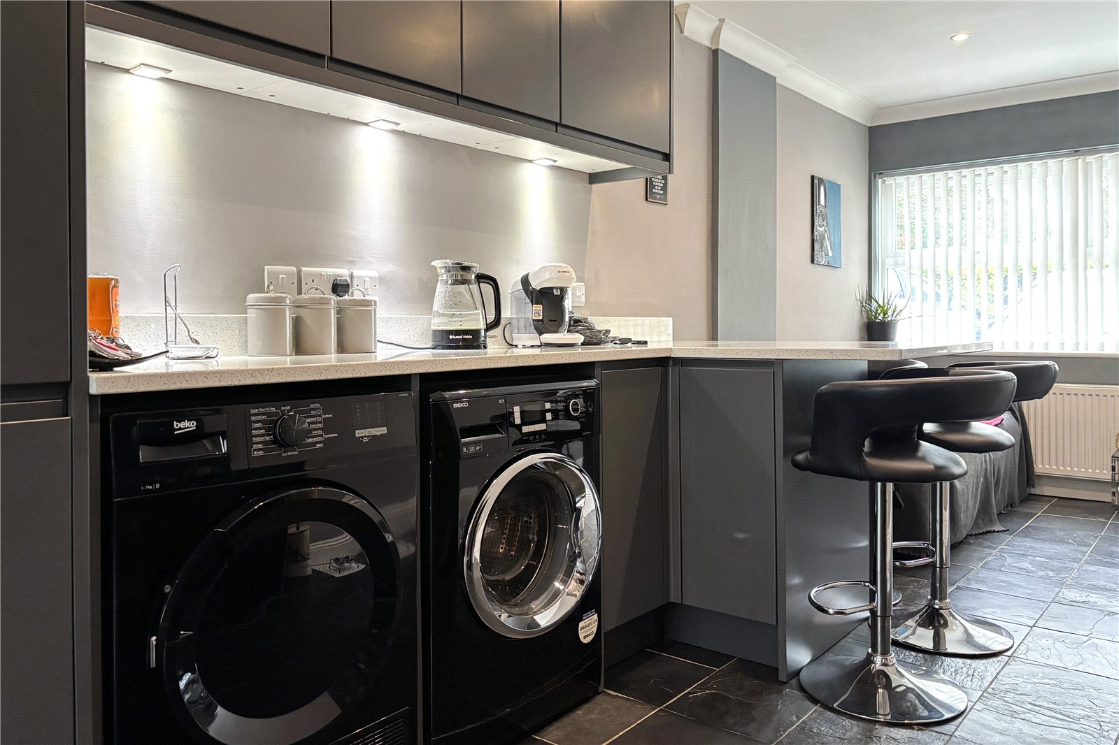 As you enter the property you are welcomed by a bright and airy hallway that leads onto the ground floor living space. A front room which is a very versatile space and can be used as a playroom, snug or office and includes a bay window. A large living room which is an ideal family space and perfect for entertaining or family evenings together. This leads onto the conservatory which is a brilliant space fitted with a wood burner meaning warmth through the winter months and French doors open up to the garden allowing for free flowing living in the summer. The modern kitchen which spans the length of the home includes plenty of worktop and storage space and allows for social living as there is a breakfast bar and space for a sofa and TV. There is also a downstairs W/C.