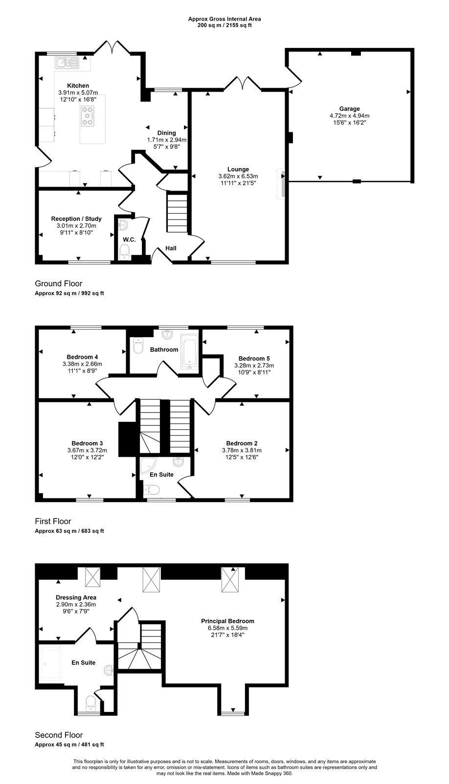 The first floor offers 4 good sized bedrooms, one with an ensuite, and a family bathroom, while the second floor is dedicated to the principal bedroom complete with its own dressing area and a further ensuite.
