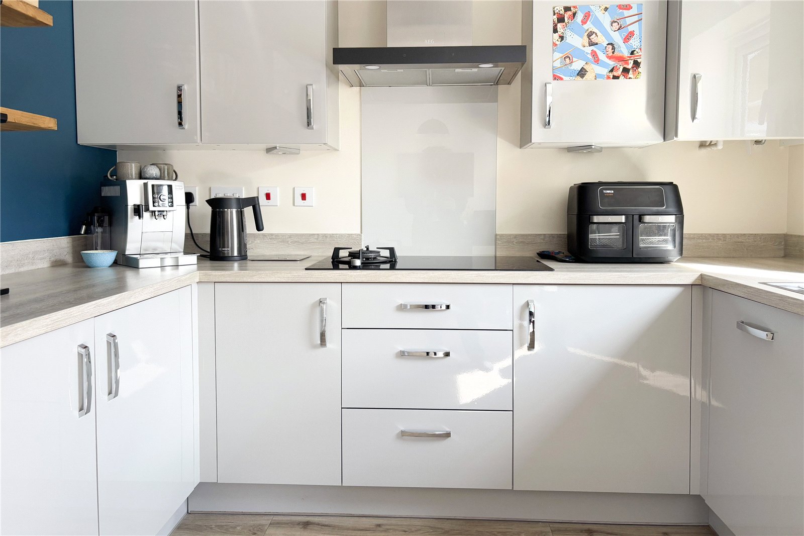 As you enter the property the light and modern feel gives a warm homely environment. The ground floor consists of a sitting room which boasts high ceilings and lots of space for family living. A modern high specification kitchen/diner is fitted with a range of wall and base cabinets including integrated appliances such as oven, hob, fridge/freezer, microwave and dishwasher. With plenty of space for a dining table and chairs this is the hub of the home and is perfect for entertaining with French doors opening onto the decking and garden great for summer dining. A cloakroom and a useful utility area with tumble dryer and washine machine compeltes the ground floor.