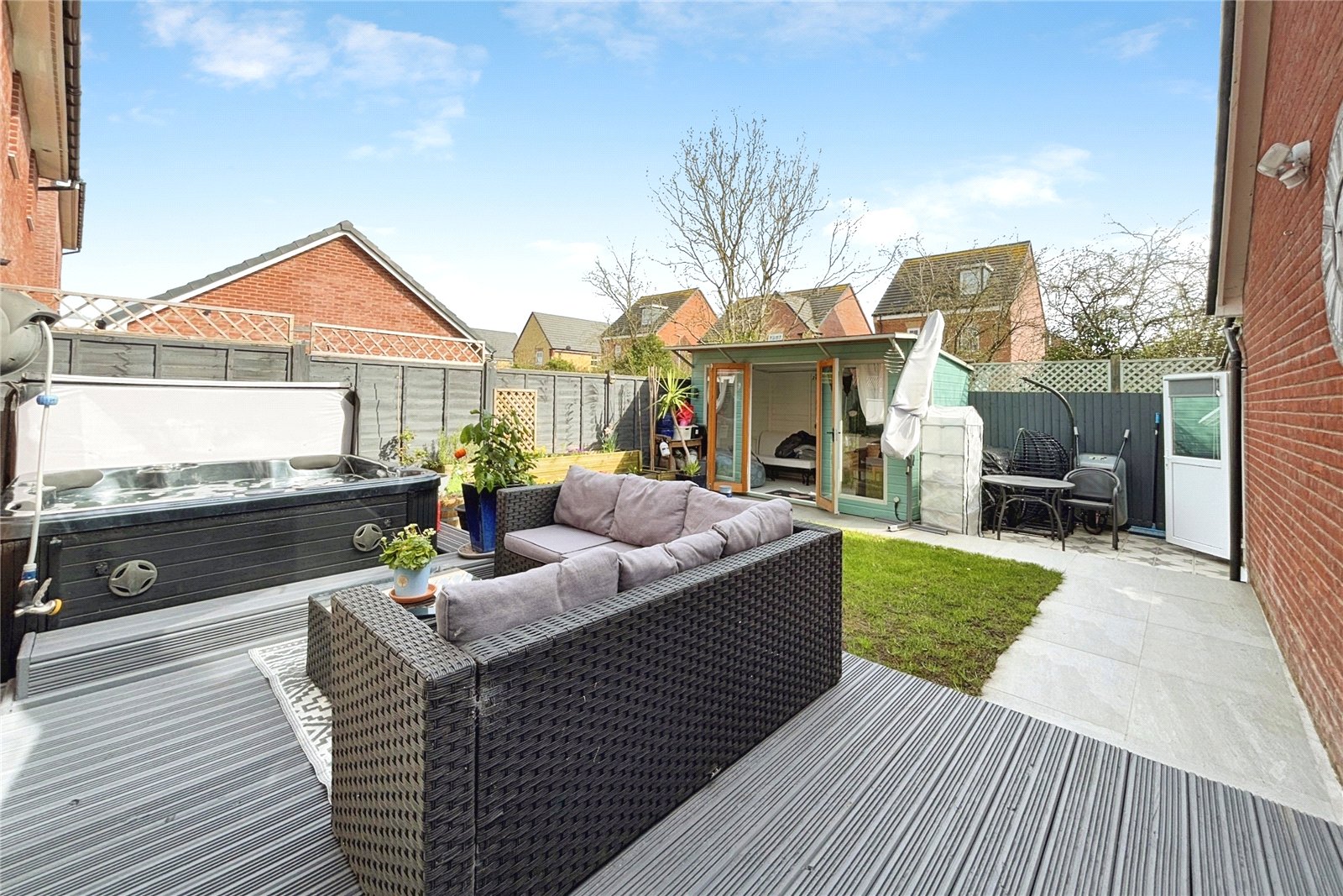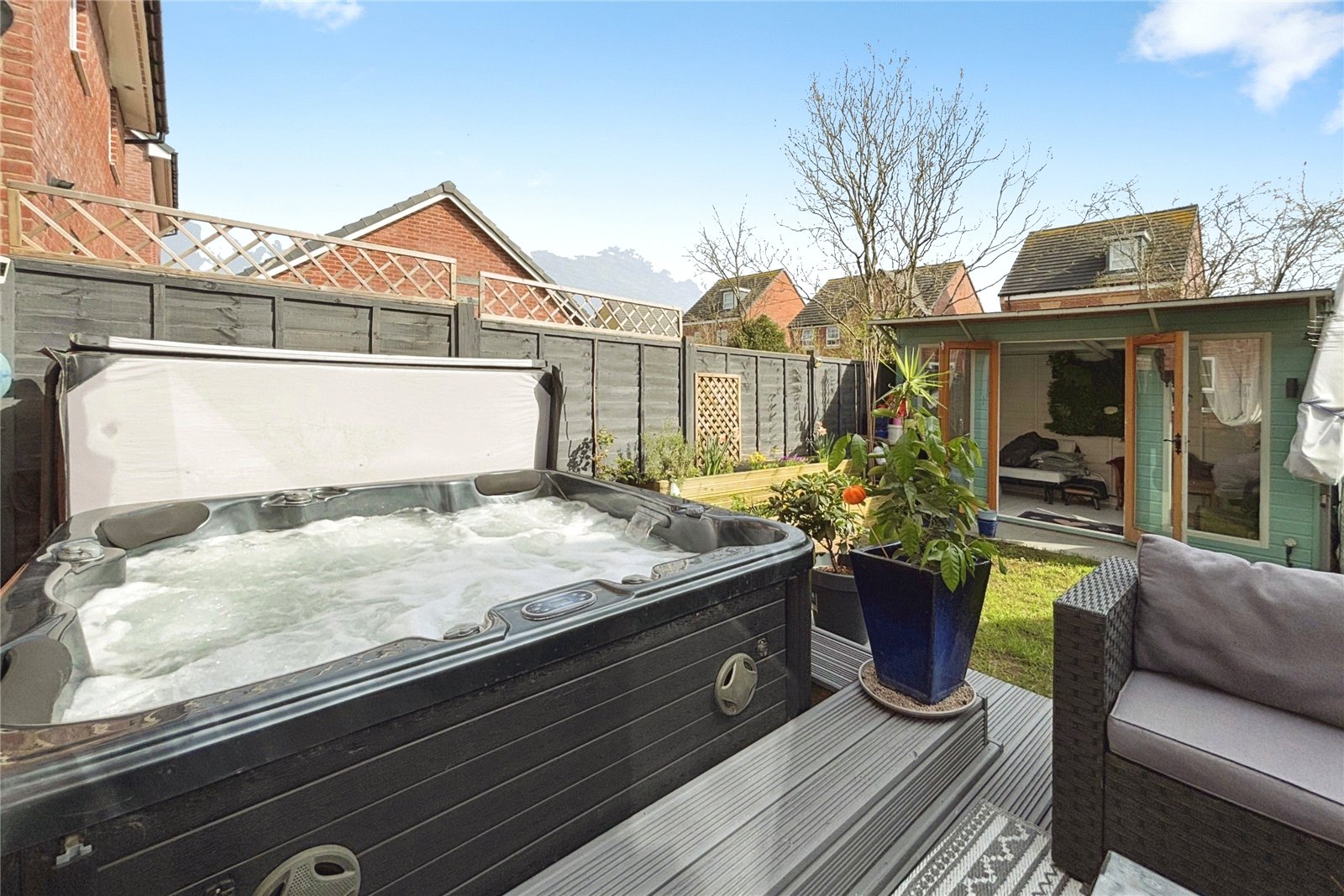 Externally there is a single garage and ample parking for multiple cars in tandem. A sunny garden and decking area make for an ideal summer space that includes a hot tub and summer house which has mutiple electric points and power and located to the rear of the garage is a useful room currently used as a music room however could be used as a office space or studio which also has multiple electric points.