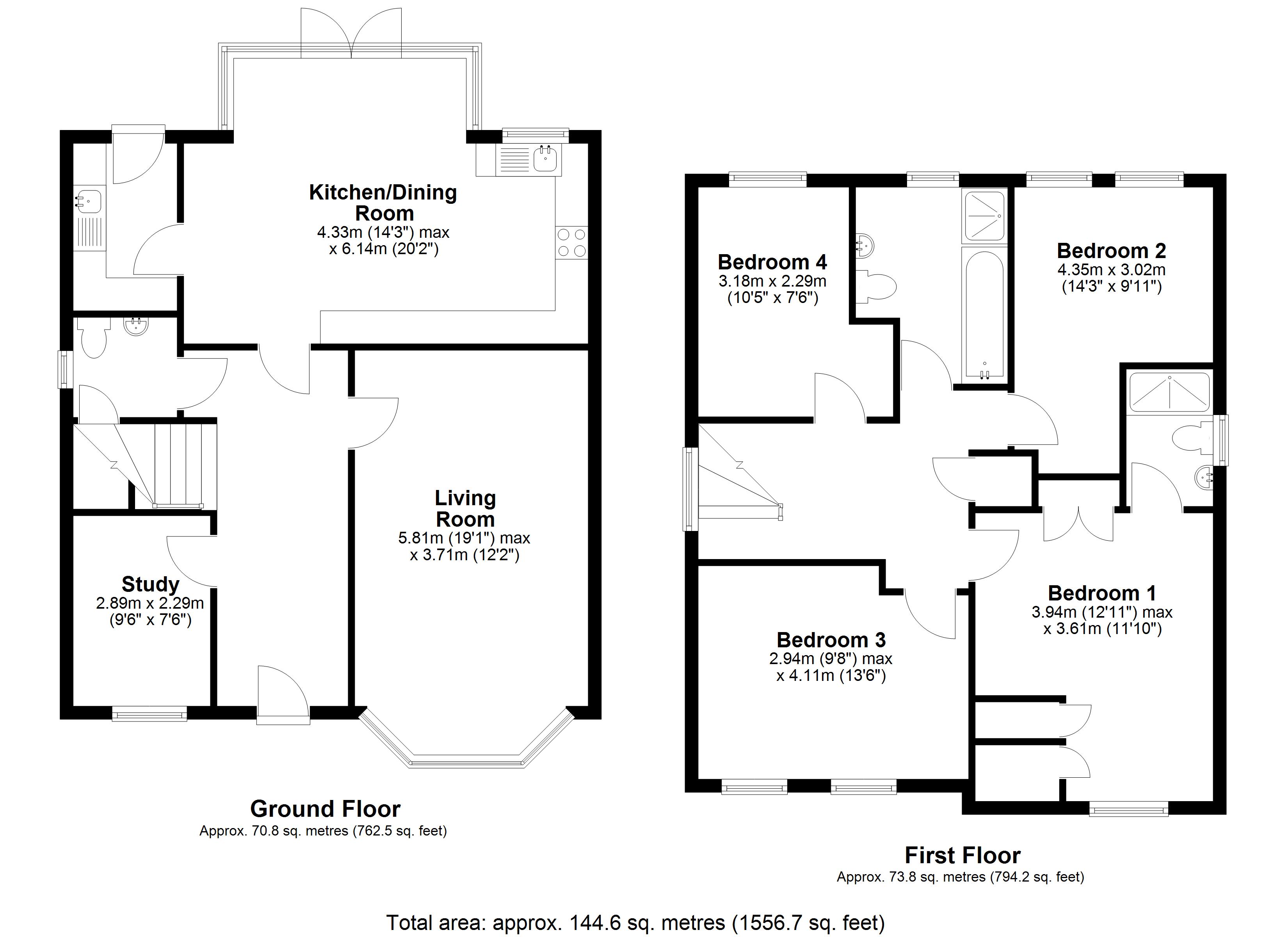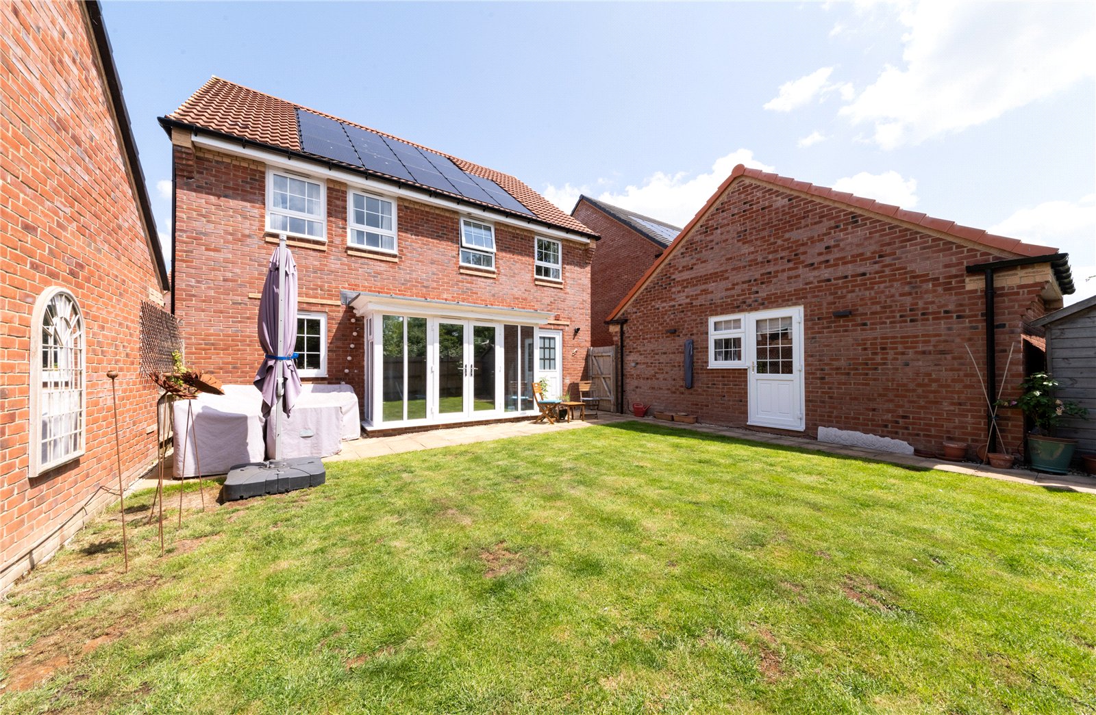 Once inside you will discover a large living room with feature bay window ideal for family time, an open plan kitchen/living/dining area which is the hub of the house and perfect for entertaining guests, a utility area with rear access to the garden, a cloakroom and an invaluable study or children’s playroom. Upstairs the property continues to impress with four double bedrooms including a principal bedroom that includes an ensuite and fitted wardrobes, a family bathroom with separate bath and standing shower completes the upstairs.