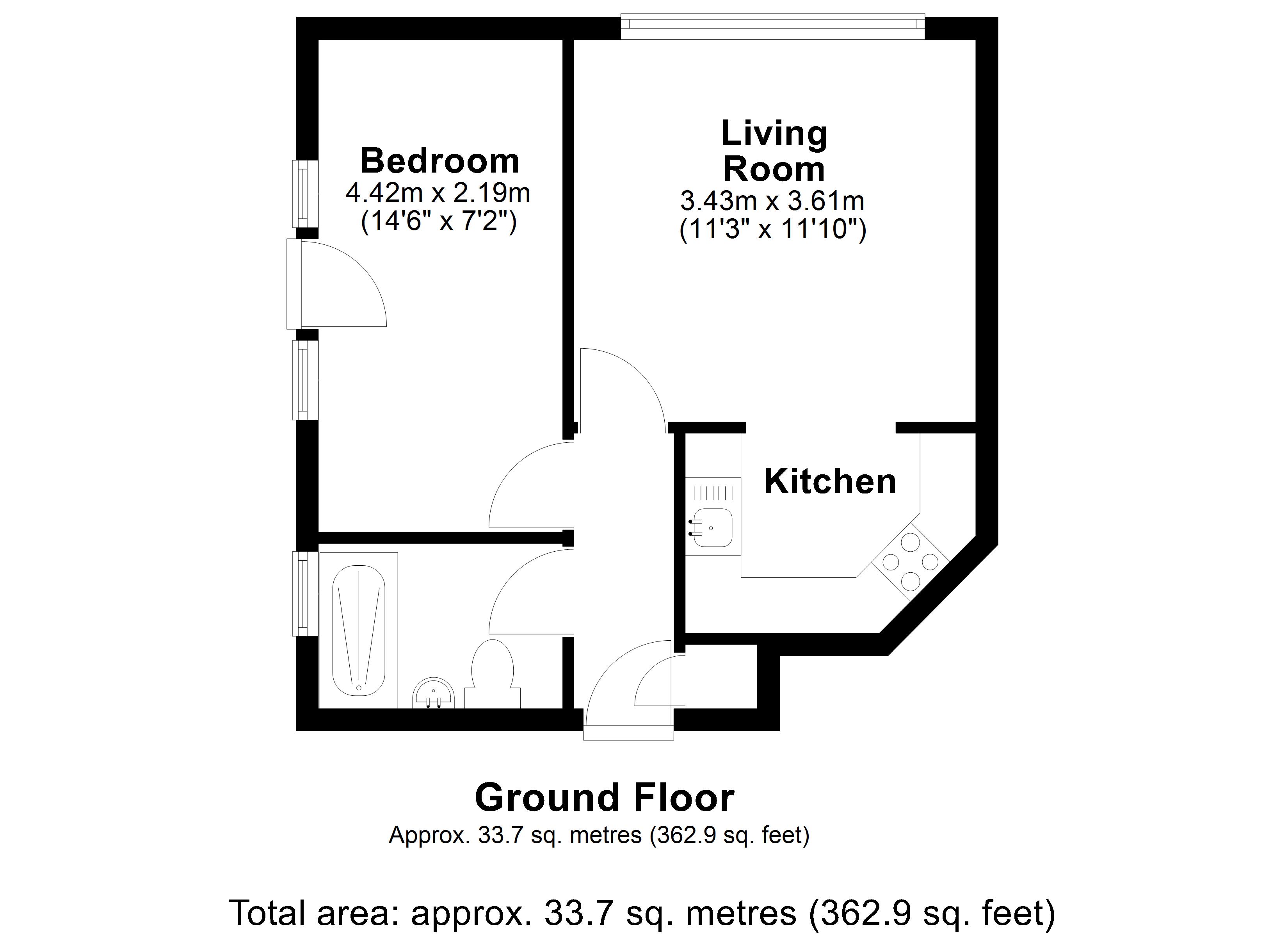 From the communal entrance there is a bright stairwell leading up to the front door of the apartment. The entrance hall leads to the spacious sitting/dining room with large windows. There is a kitchen with scope to provide a good amount of storage and worktop space. The bathroom has a large walk in shower and finally the double bedroom is a good size and could easily accommodate some built in storage units or freestanding wardrobes; this room has large windows and a glazed door for a juliet bacony. Heating and hot water are both fuelled by electricity. There is an allocated covered parking space.
