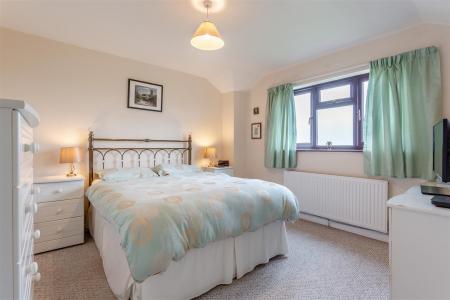 Bedroom 1 - 4.34m x 3.48m (14'3 x 11'5) - Single radiator, large built-in double wardrobe accessed via concertina doors, hanging rail and shelving, rear aspect window with a southerly facing outlook over fields and farmland. Door to: