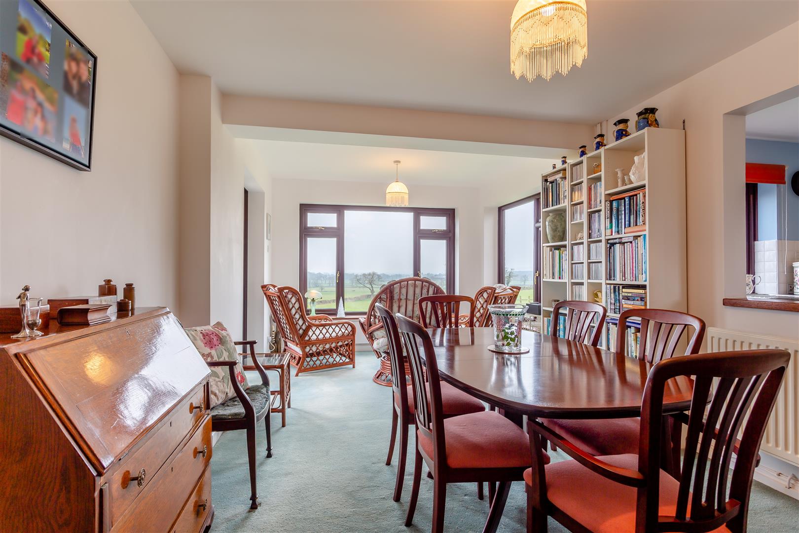 Dining / Sun Room - 5.84m x 3.18m (19'2 x 10'5) - Single radiator, electric panel heater, large picture window to the southerly aspect with superb views over surrounding fields and farmland, side aspect window, fully glazed French doors through to the rear patio.