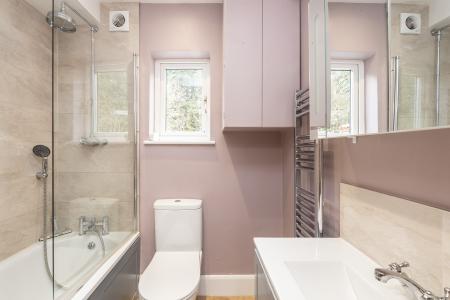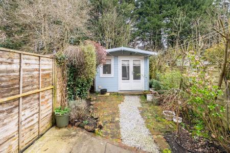 At the end of the garden is a delightful garden studio of impressive size, with power and heating. This versatile space could be used as a home office or even an occasional bedroom. Please note that the photo in the advert was taken before the current tenant moved in and it shows when the current owners used it as a spare bedroom.