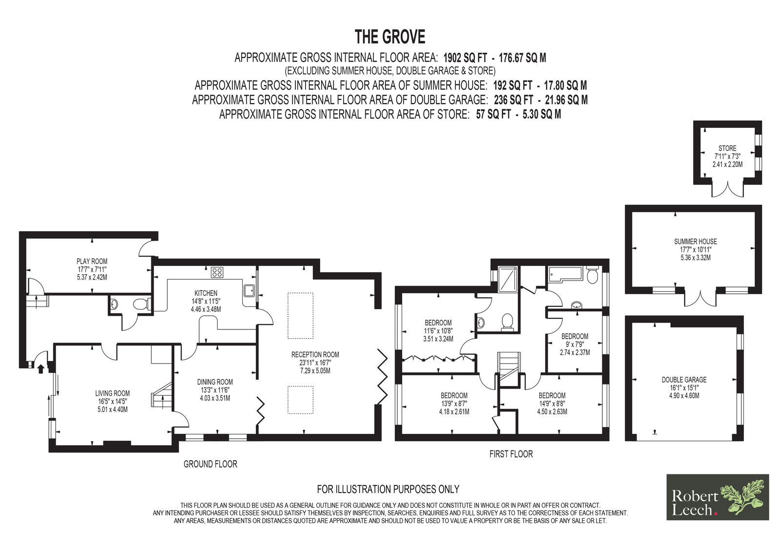 Upstairs, the home boasts four well-sized bedrooms, the master serviced by a contemporary ensuite with stylish walk-in shower, with the others by the family bathroom updated to the same high standard, all providing flexibility for busy households. The garden is well maintained and private, with a large patio directly off the back of the home, perfect for alfresco entertaining or enjoying peaceful evenings outdoors. Additional outbuildings include a charming summer house, a secure store, and a substantial double garage to the front, offering excellent storage or potential for conversion (STPP).