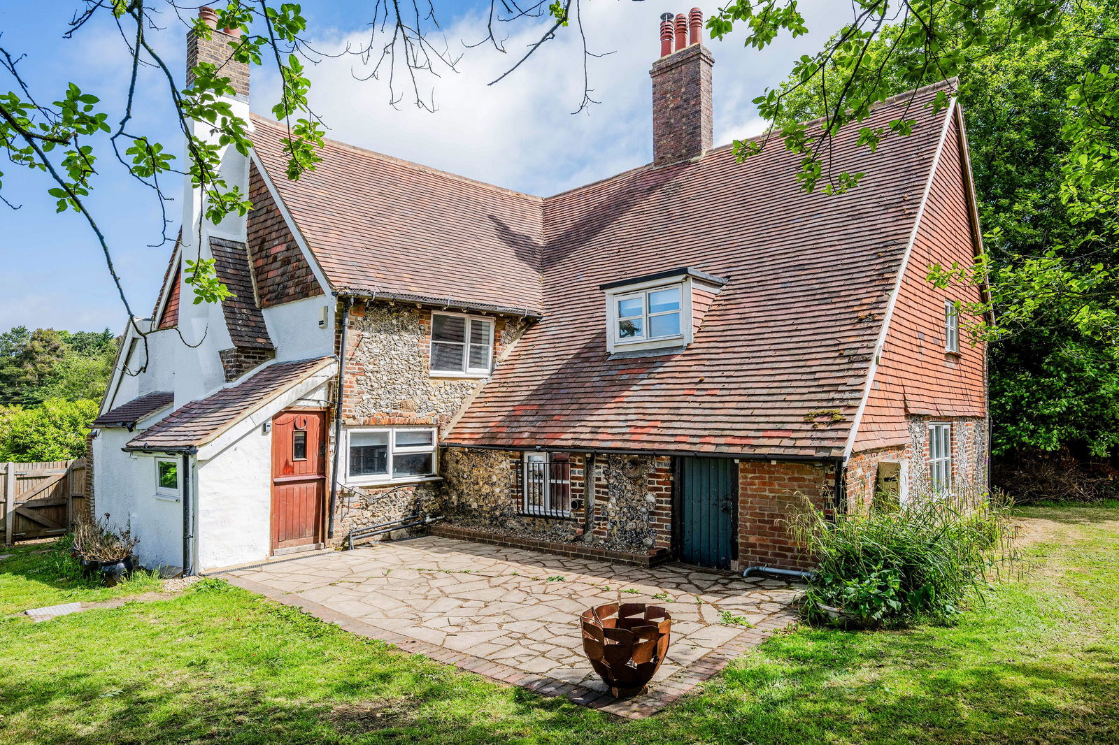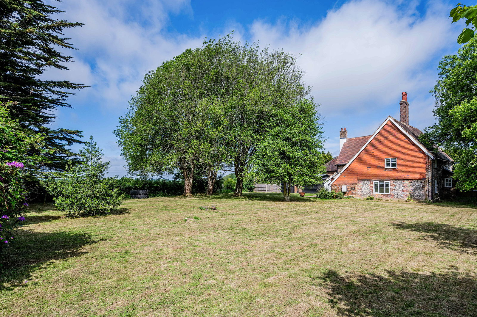 This period farmhouse (not listed) has distinctive elevations of part flint, part rendering and part facing brickwork. The current owners have recently carried out considerable refurbishment and the property is well presented in a bright finish throughout. Original features include a large inglenook fireplace to the main drawing room and a wealth of exposed timbers. The property enjoys extensive countryside views, and blends classic charm with comfortable modern living. Stepping outside, there is a formal garden area with large expanse of lawn and useful detached gym/home office building. A five bar gate leads to two large areas of paddock. The property will, therefore, appeal to those with equestrian or outdoor interests with the grounds extending to circa 10 acres.