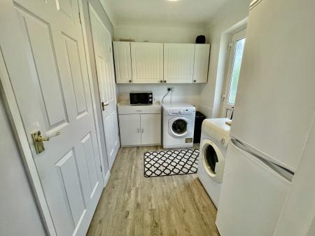 UTILITY ROOM 6' 3" x 8' 10" (1.92m x 2.71m) Obscured UPVC double glazed door to the rear elevation, UPVC double glazed window to the rear elevation, skimmed and coved ceiling, centre light point, vinyl laminate plank flooring, plumbing and space for washing machine, space for tumble dryer, space for fridge freezer, door to:
