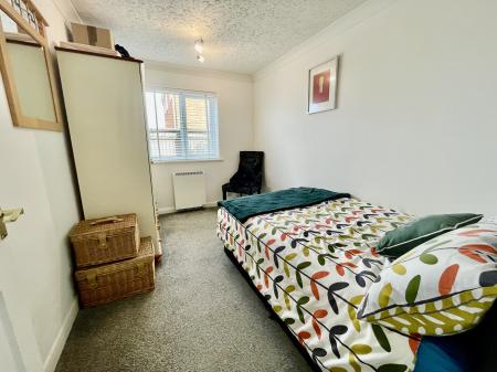BEDROOM 3 8' 1" x 11' 10" (2.48m x 3.61m) UPVC double glazed window to the side elevation, coved and textured ceiling, centre spotlight fitment, electric storage heater.