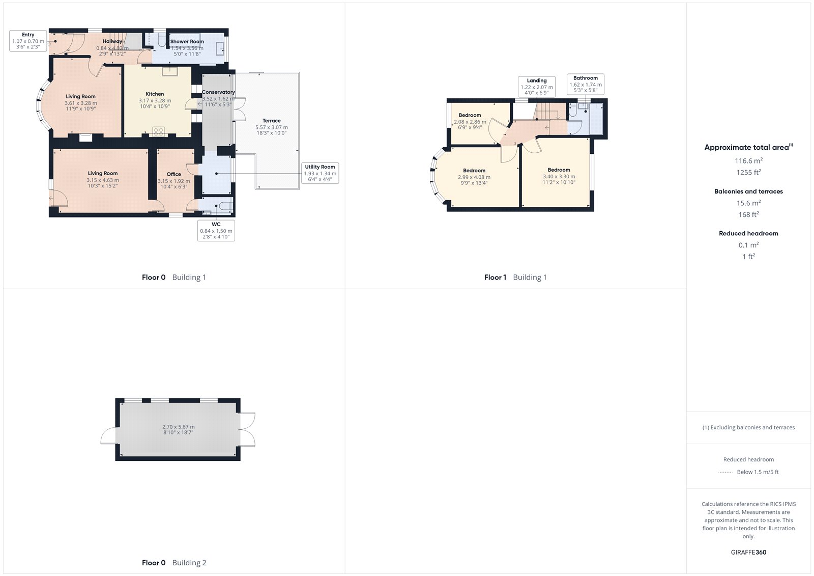 - Approximately 1,255 sq. ft.