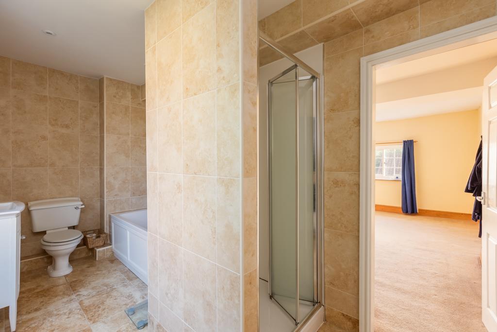 The Jack & Jill style bathroom has lockable doors from the main bedroom and also the landing area. With a white three piece suite comprise; bath, walk in shower, wash hand basin, low level W/C, fully tiled walls and floor, heated towel rail.