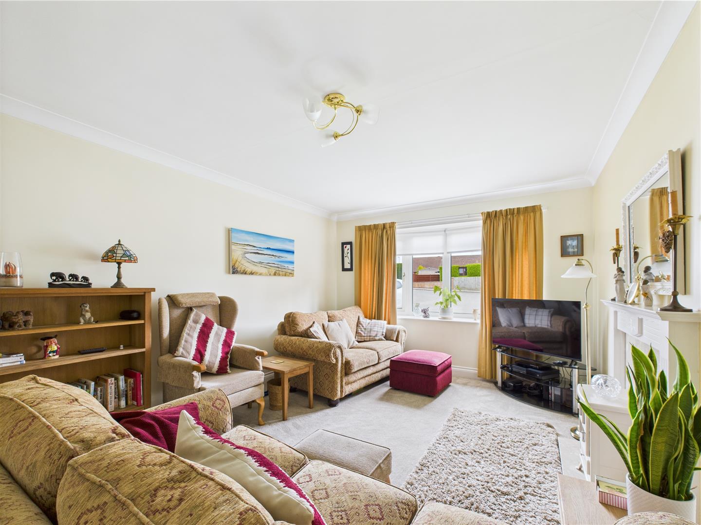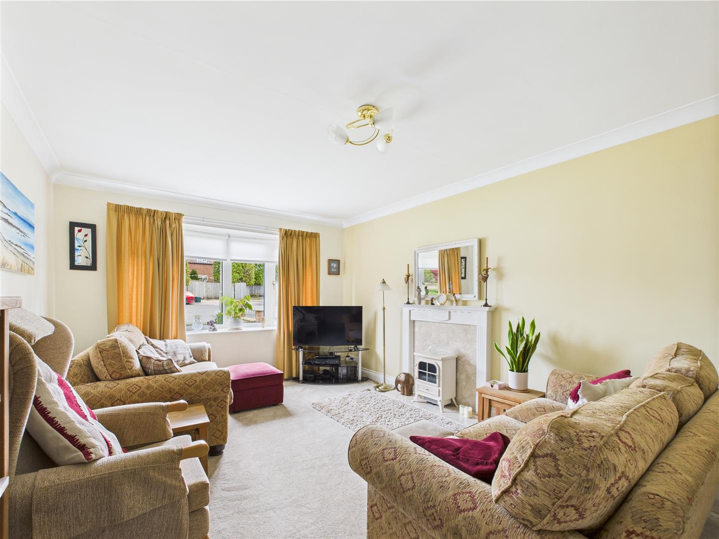 5.12 x 3.35 (16'9" x 10'11") - UPVC window to front, coving, power points, TV point, telephone point, feature fireplace with electric fire and marble hearth,