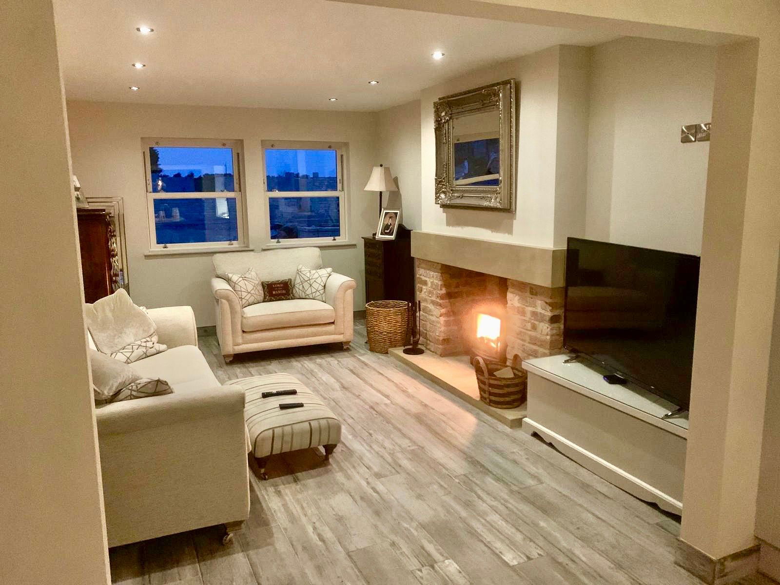 - Separate living room with wood burning stove