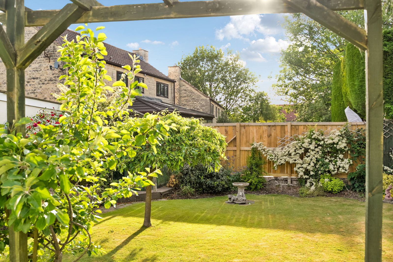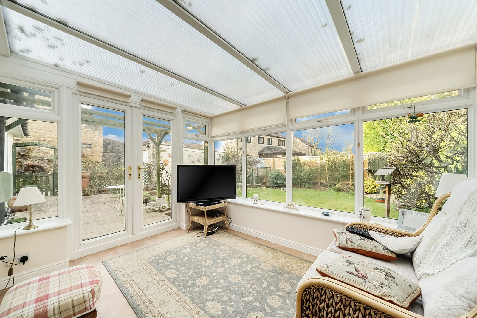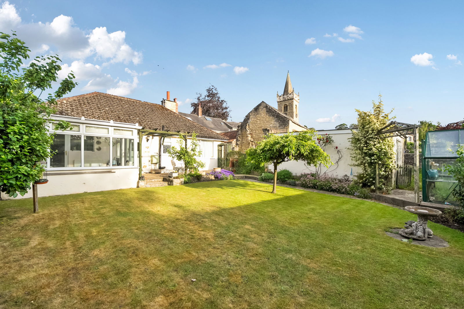 - Good sized lawned gardens with patio area, flower shrub borders, veg area, greenhouse
