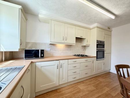The breakfast kitchen is fitted with range of shaker fronted wall and base units, work surfaces with tiled splashback and windowsill reveal. Integrated appliances include an electric double oven, four ring gas hob with extractor hood above, integrated fridge and freezer, automatic washing machine, dishwasher and stainless steel sink unit with drainer and mixer tap. A wall mounted Ideal gas fired central heating boiler is discretely housed in a cupboard unit.