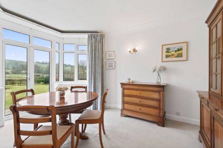 - Formal dining room with bay window and patio doors opening onto the rear garden