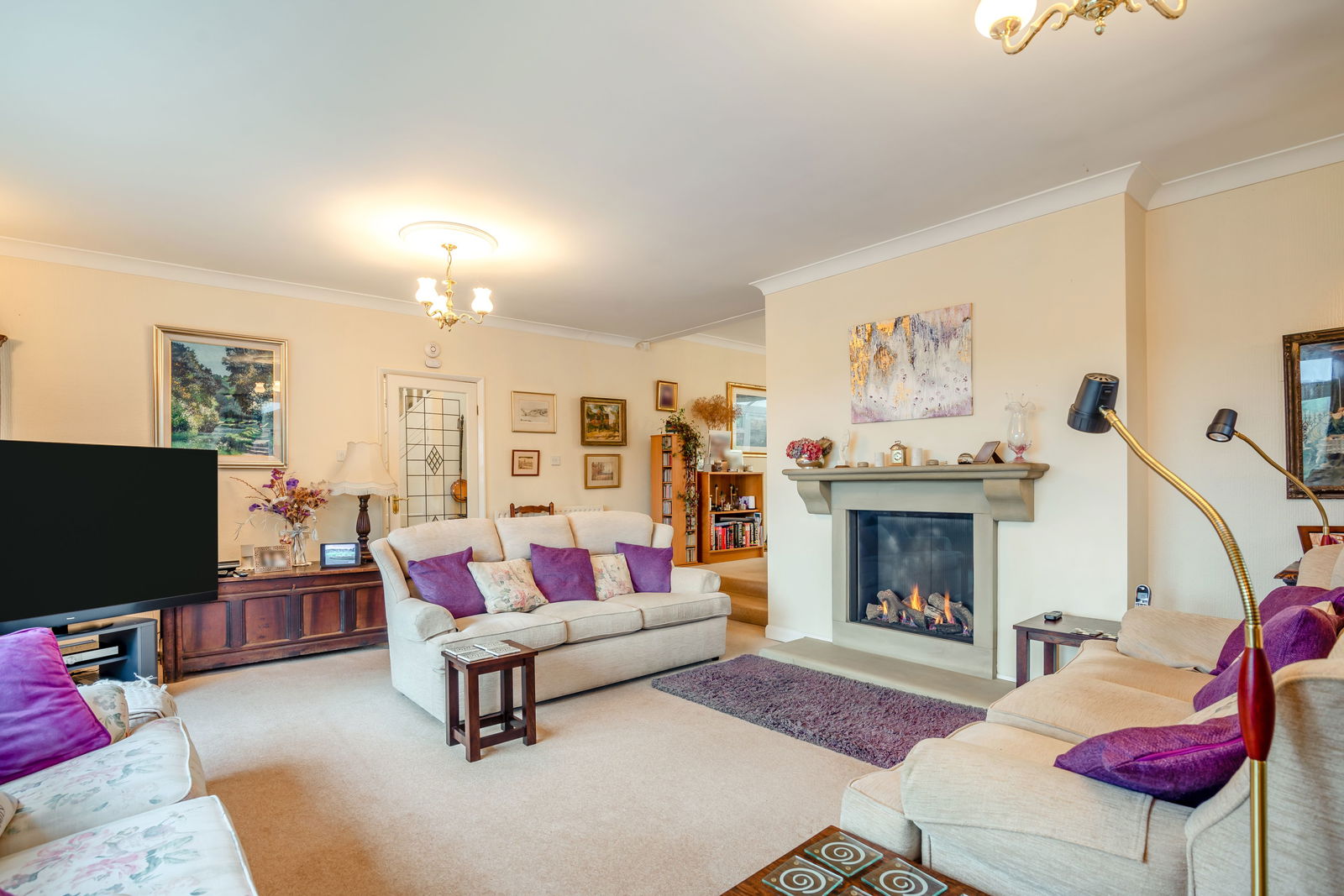 - Spacious living room with picture window looking towards Wood Hall Spa