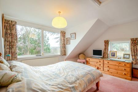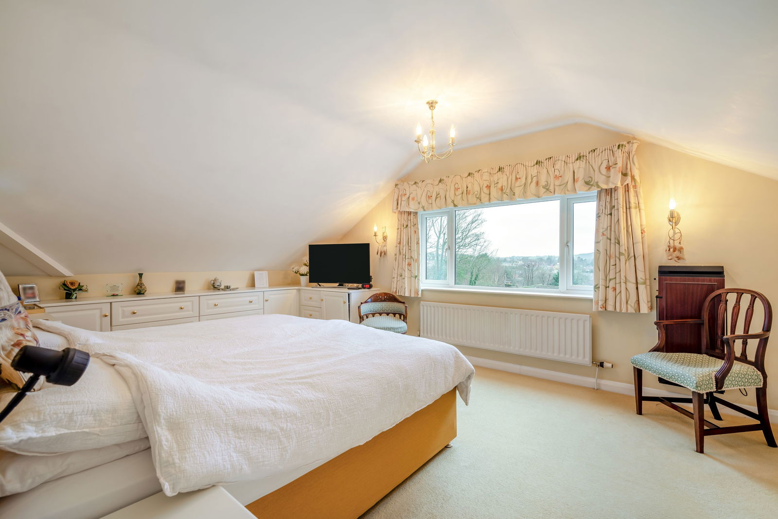 - Principal bedroom with part‑vaulted ceiling, extensive fitted storage and stunning outlook