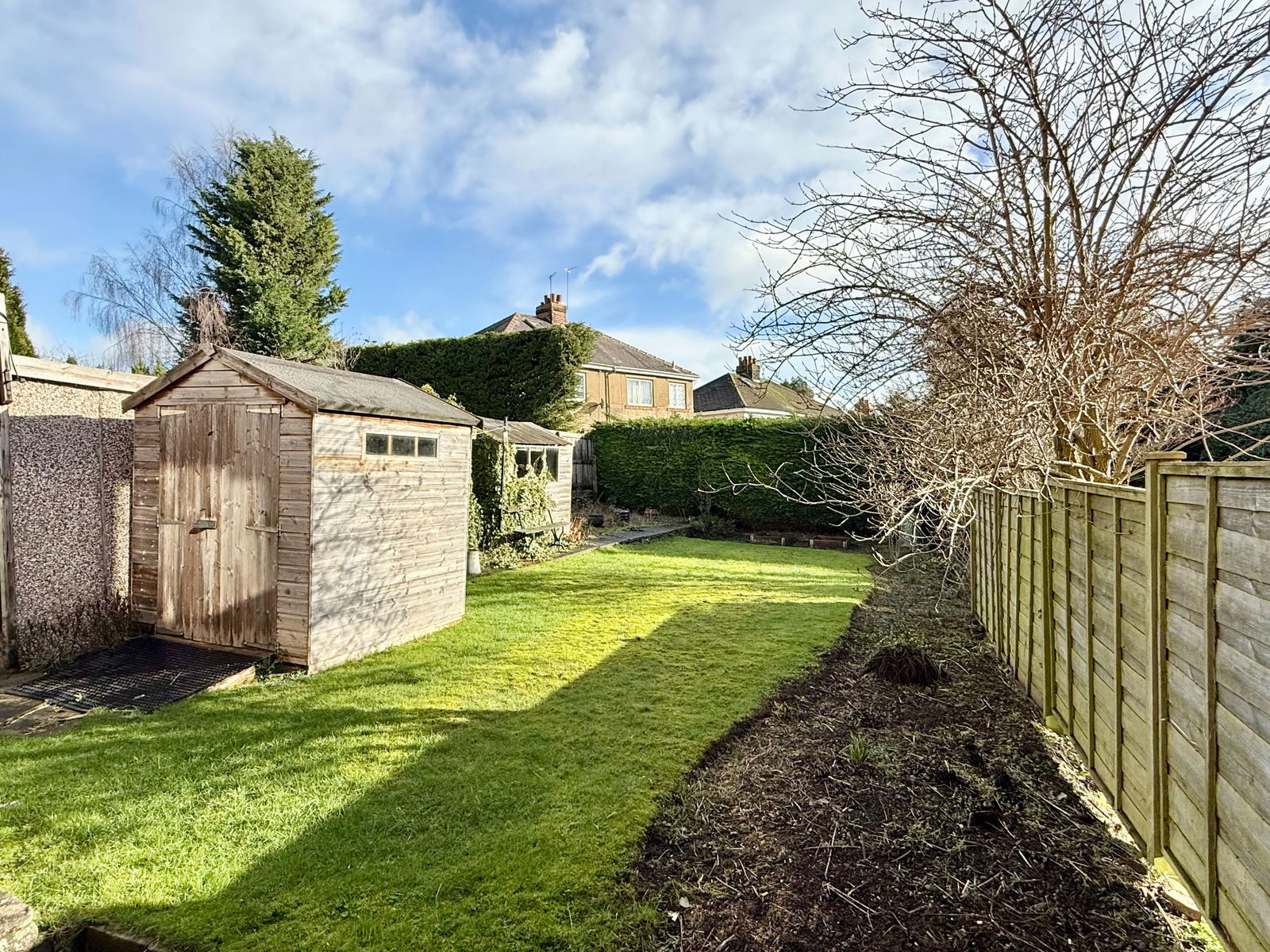 Externally, a driveway provides ample off-road parking for multiple vehicles and leads to a detached single garage. The front garden is attractively arranged with shaped flower beds, a rubble stone wall and a neatly maintained perimeter hedge. To the rear, a private garden of generous proportions is laid predominantly to lawn with deep, well-stocked borders, enclosed by timber fencing and established hedging, and complemented by two timber garden sheds.