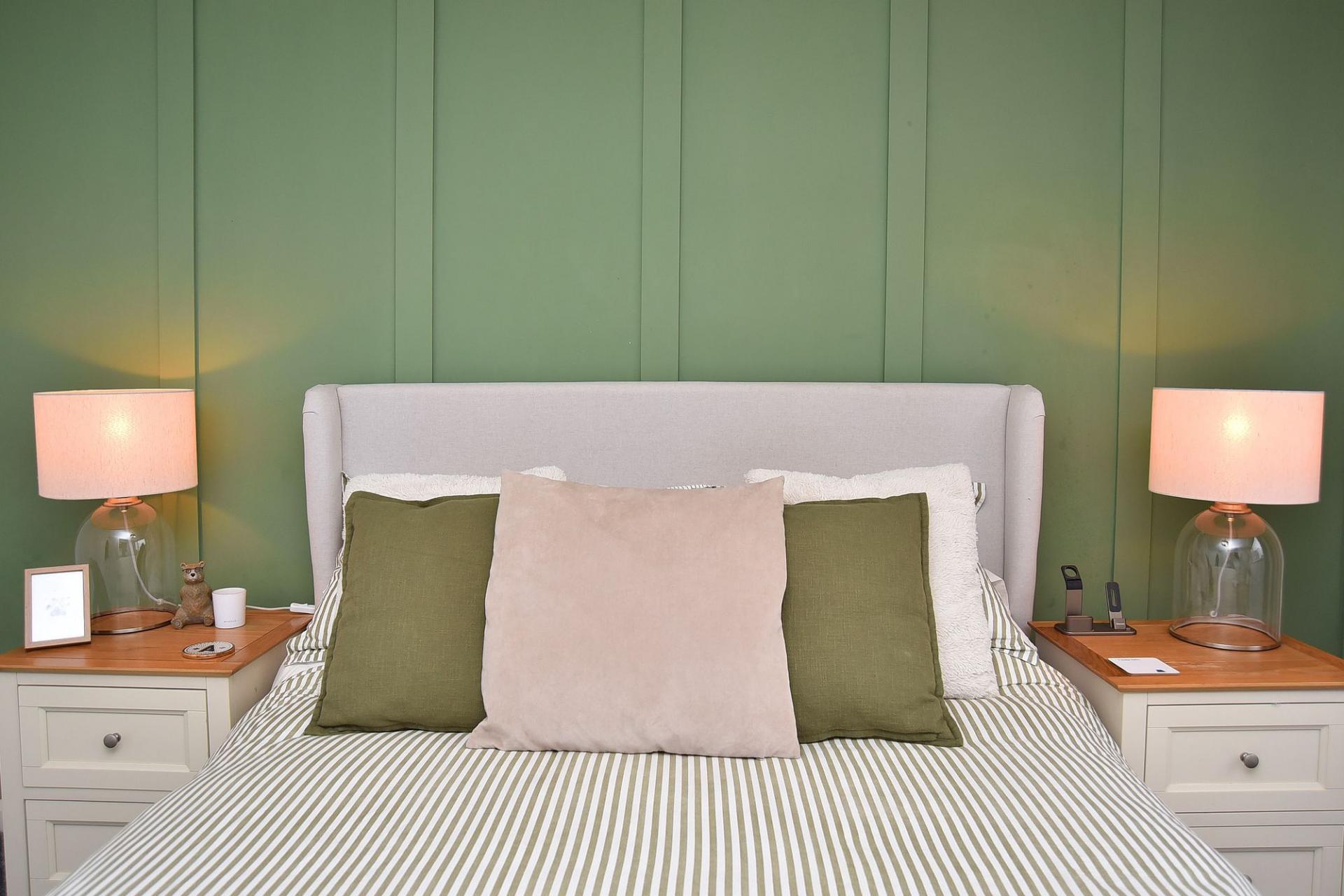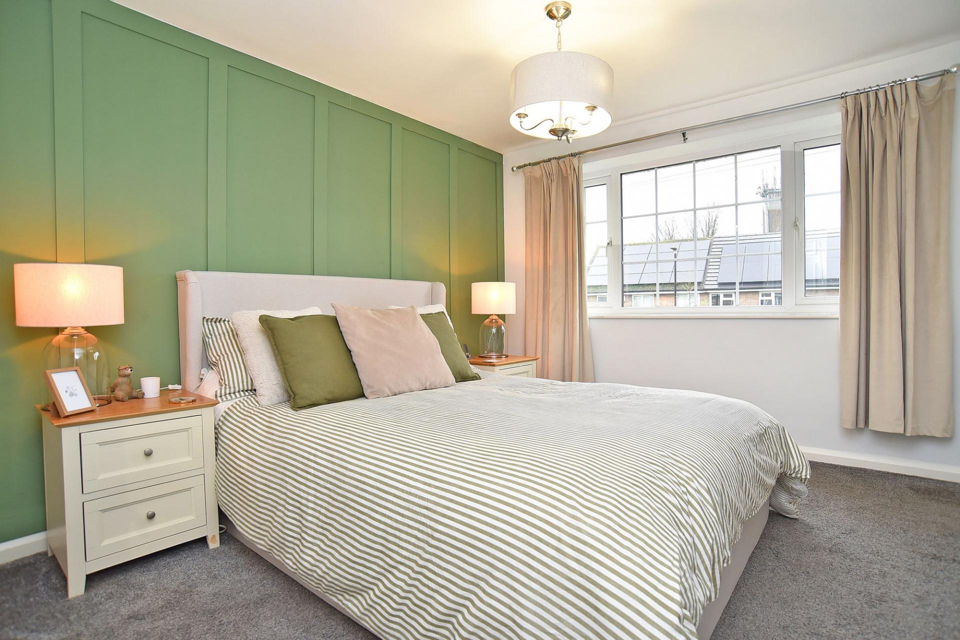 To the first floor are two well-proportioned double bedrooms. The principal bedroom is a generous and beautifully styled room featuring a striking panelled feature wall and ample space for bedroom furniture. The second bedroom is also a true double, offering versatility for guests, a child's room or home office.