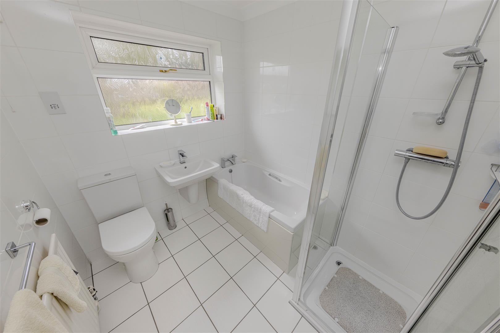Bathroom - 2.34 x 1.96 (7'8" x 6'5") - A white bathroom suite which comprises; bath, W.C. wash hand basin, shower cubicle, tiled effect flooring, radiator, tiled walls, extractor, uPVC double glazed window to the rear aspect, inset spotlighting.