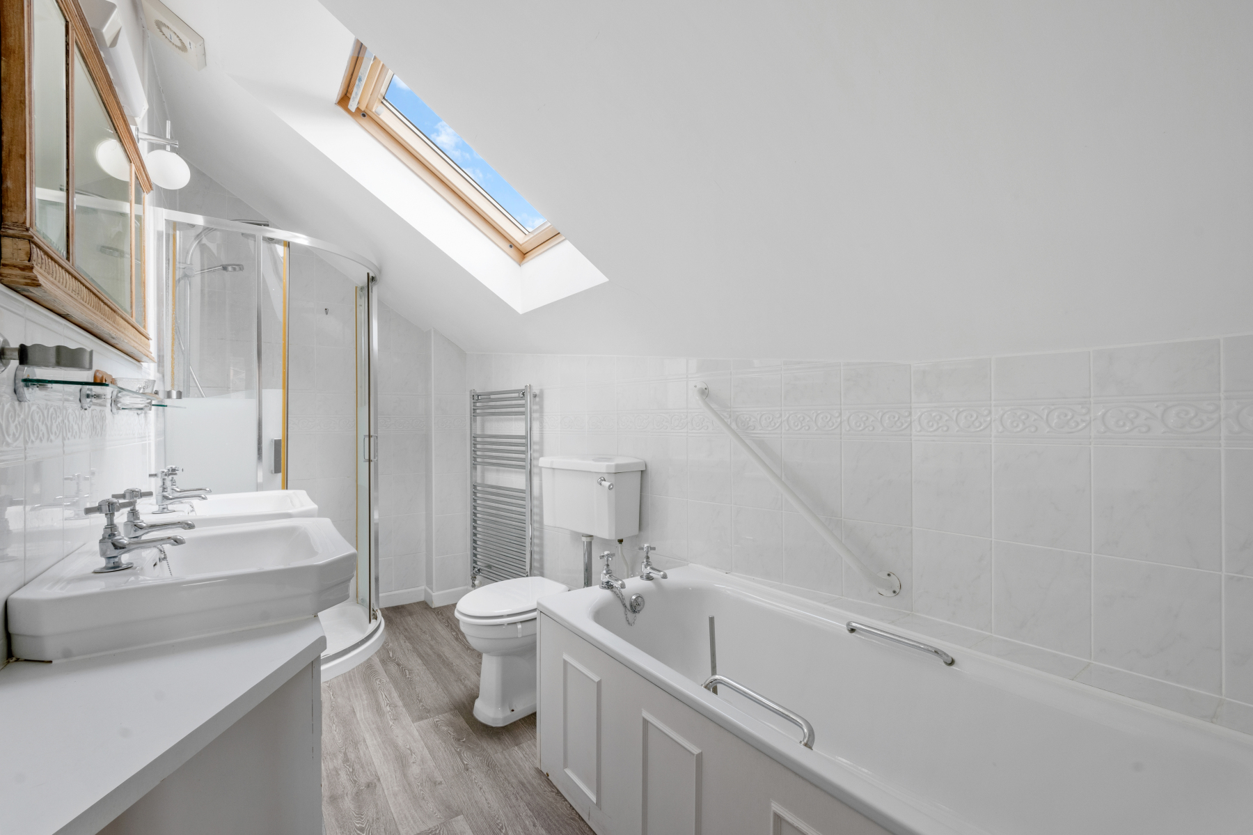 From the Sunroom, stairs head up to BEDROOM TWO, this room has built in wardrobes. This also benefits from an ENSUITE BATHROOM with panelled bath, separate shower cubicle, two wash hand basins and W.C. BEDROOMS THREE and FOUR, share a thoughtfully designed FAMILY BATHROOM, ensuring comfort for all residents. Many of these rooms retain their original fireplaces, adding a touch of historic charm.