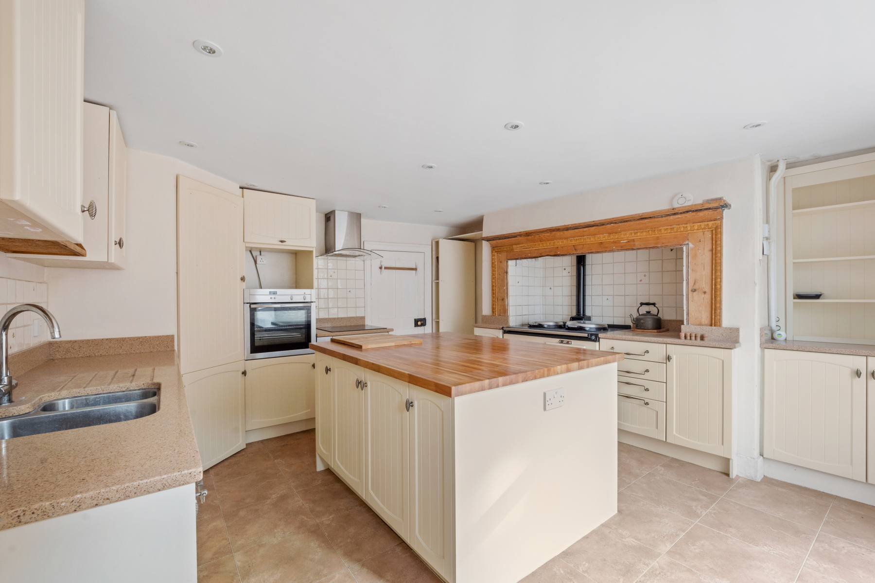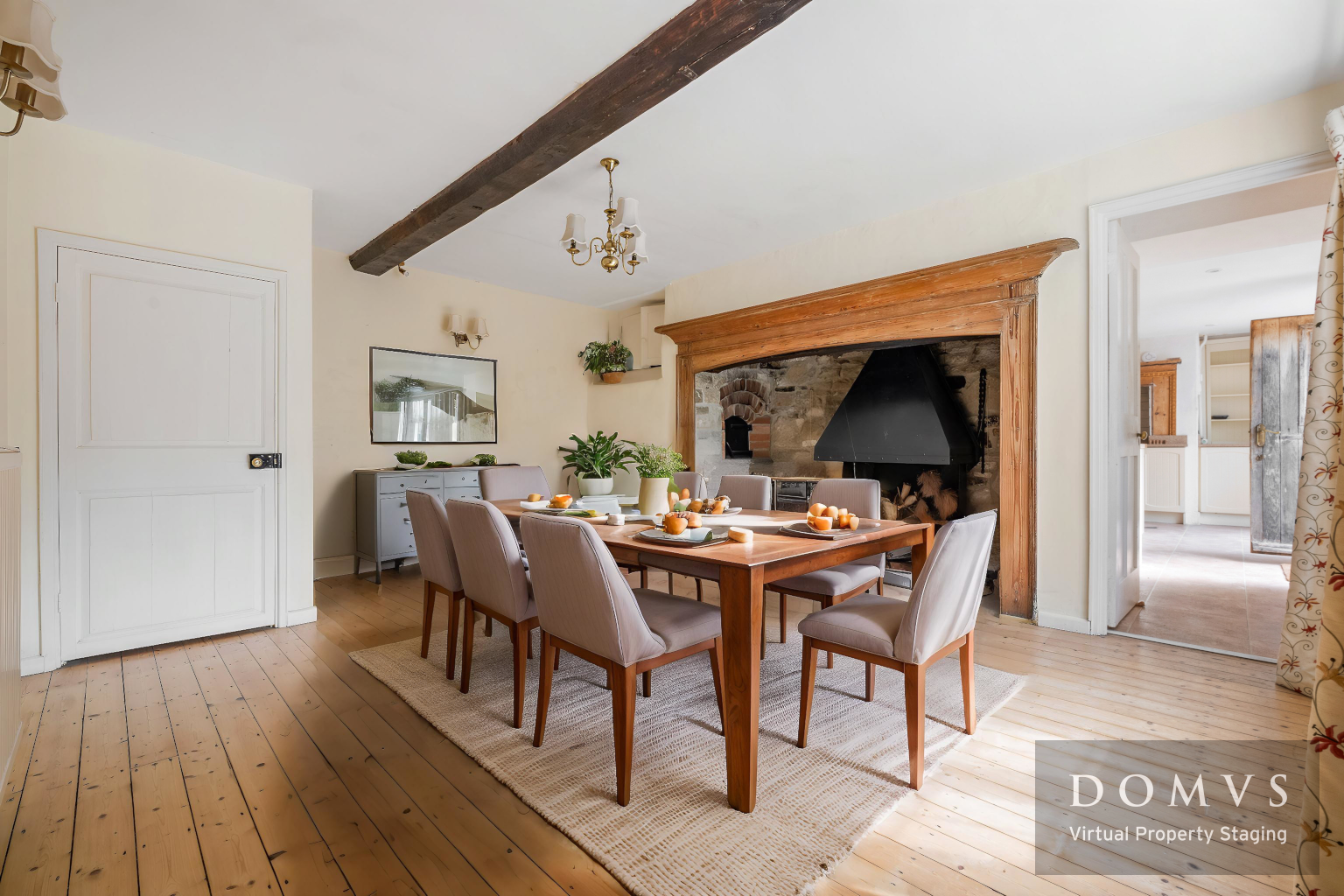 As you step through the front door, you are welcomed by a generous HALLWAY that sets the tone for the rest of the home. To one side of the hallway is the SITTING ROOM, where a wood-burning stove provides a cosy focal point, perfect for relaxing evenings with a good book or enjoying intimate gatherings. The DINING ROOM easily accommodates a sizeable table with chairs and benefits from an impressive inglenook fireplace complete with a traditional bread oven and a large open fire basket with a canopy.