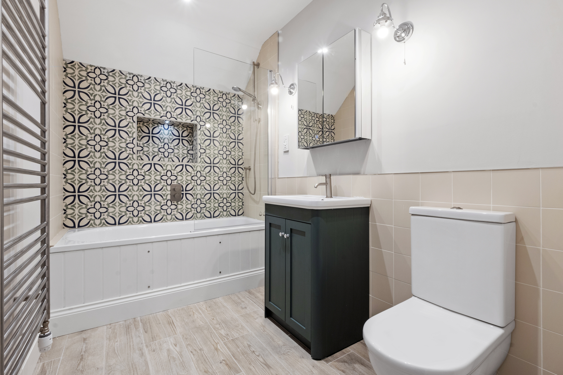 Additionally, there is a FAMILY BATHROOM with panelled bath and a screened shower over, a WC and vanity basin. Also off the LANDING is a cupboard with a sensor light, housing the pressurised hot water cylinder.
