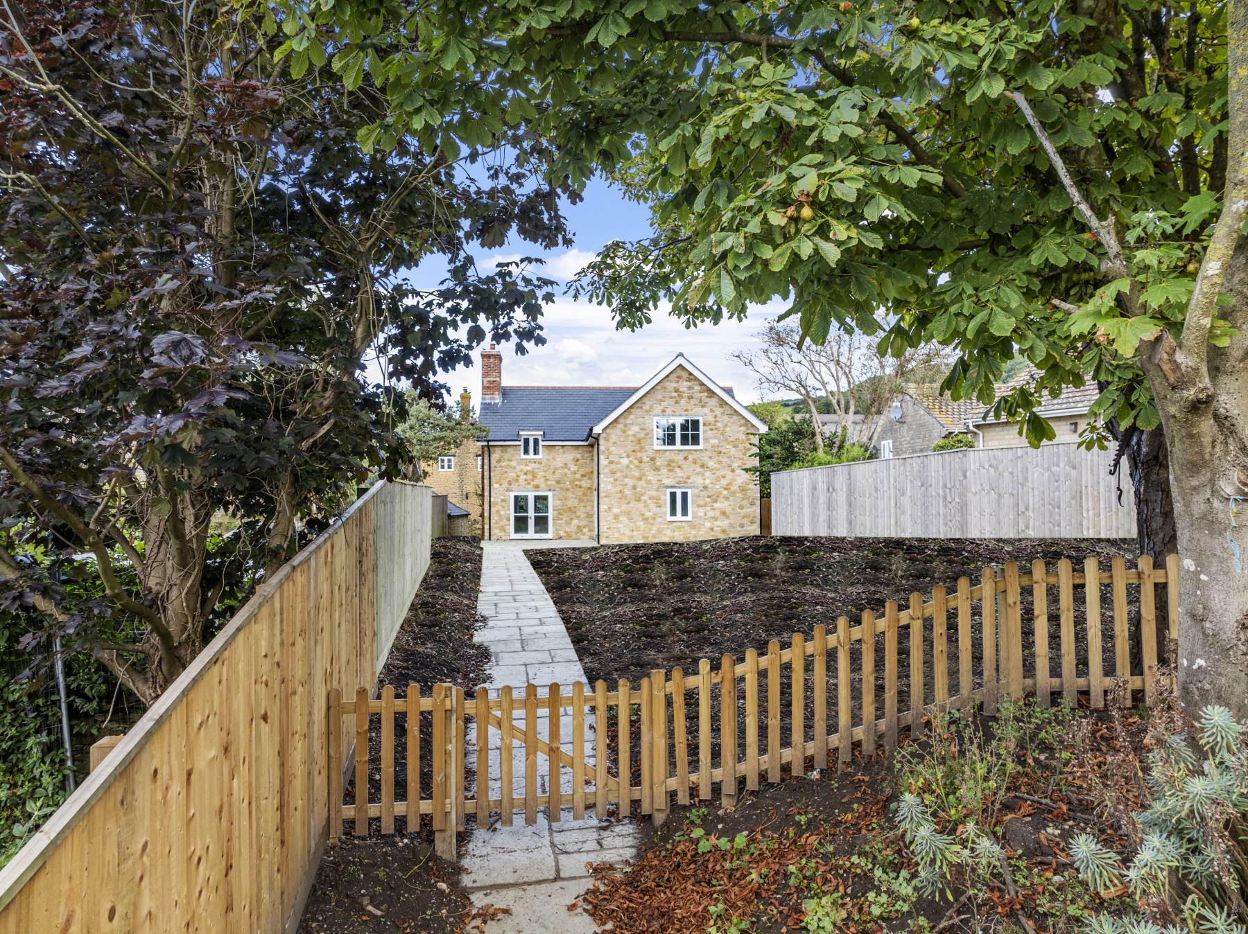 A rear picket gate opens to the ENCLOSED GARDEN with a mature chestnut tree and a seeded lawn, currently a blank canvas ready for the new owner to put their own stamp on it.