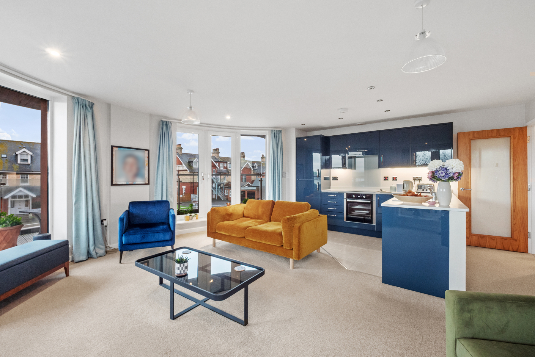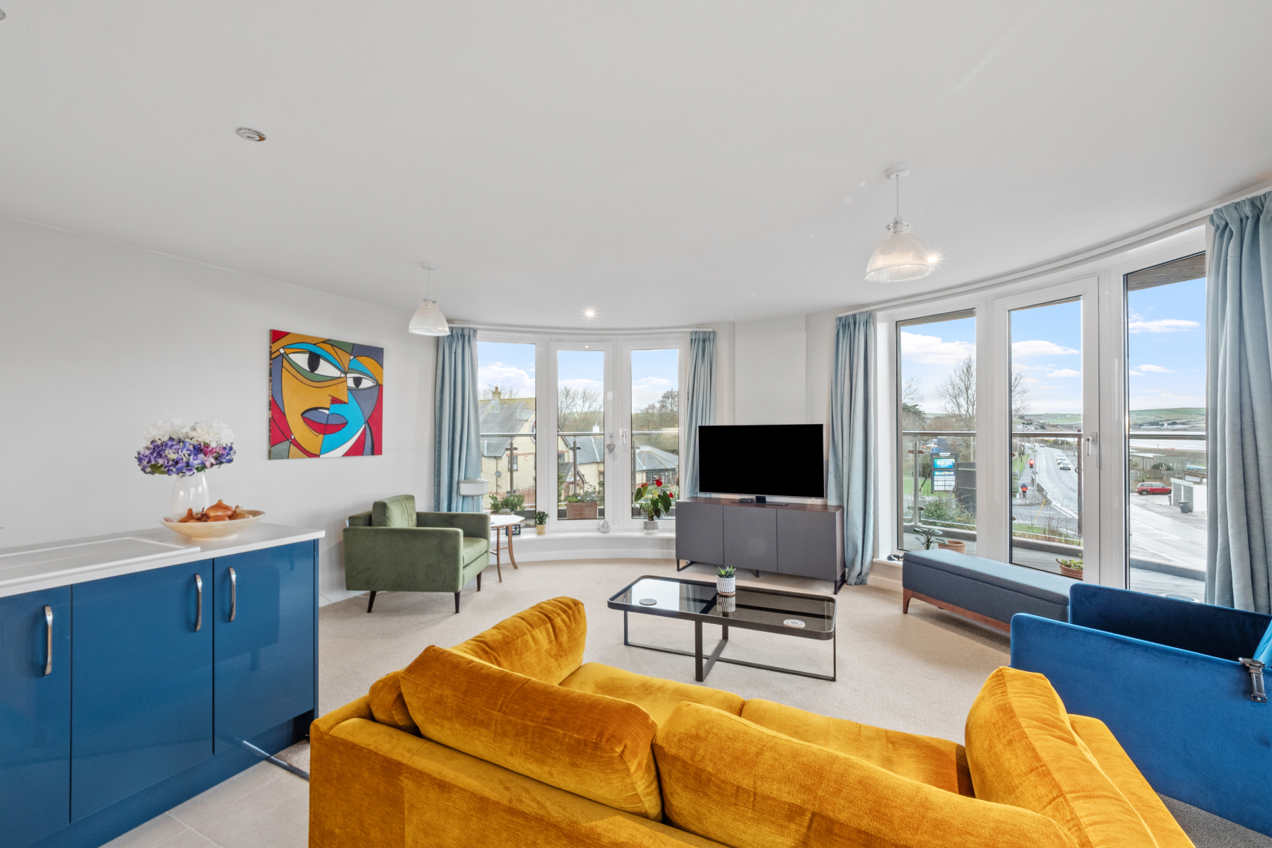 The expansive open-plan living area has been designed with both relaxation and entertaining in mind, seamlessly combining the KITCHEN/DINING and SITTING ROOM. The wrap-around layout of the sitting room creates a wonderfully bright, airy environment with superb coastal views, while the curved balcony offers an ideal spot to enjoy the sea air or simply watch the world go by.